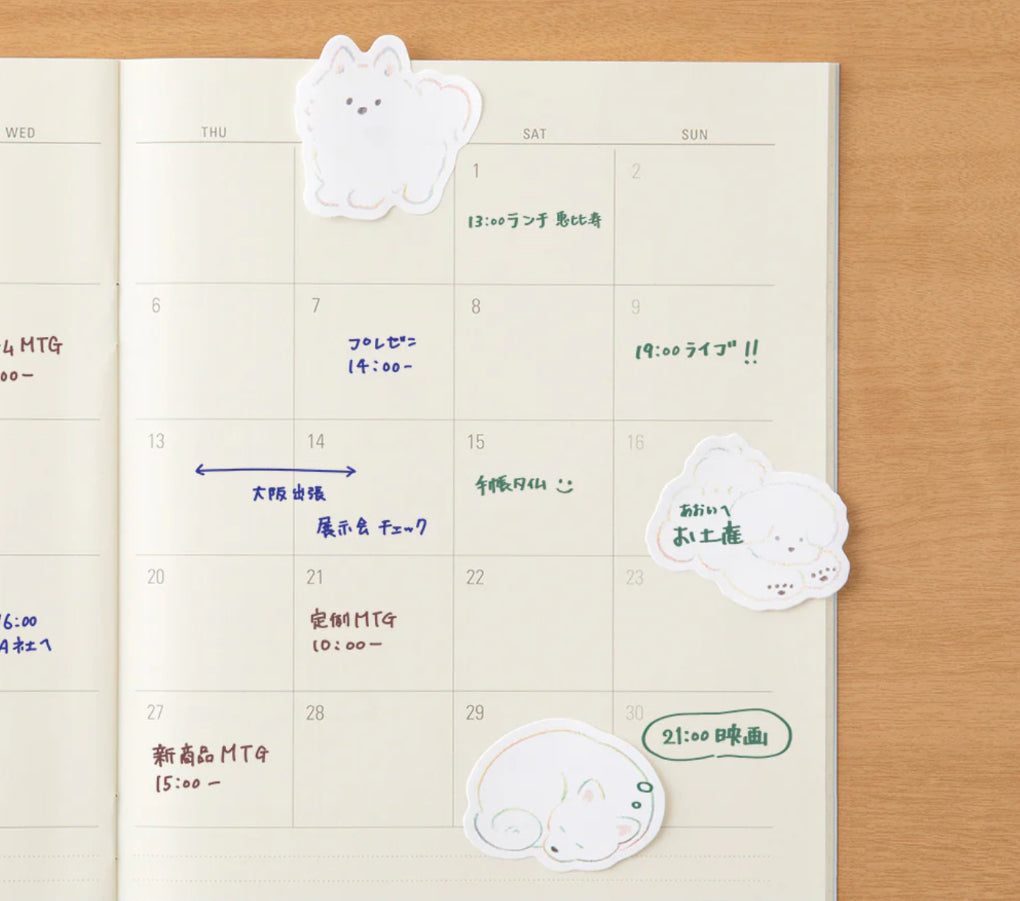 A cat peeks out from between the pages of this small sticky notes can be used as an index in notebooks and organizers. It can also be used as a schedule page with appointments written in the margins. The two-fold mount is inserted into the sleeve of the cover, making it easy to carry along with your diary, schedule planner or notebook.