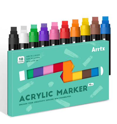 Arrtx JUMBO Acrylic Marker - 10 Color Set - 15mm Broad Tips