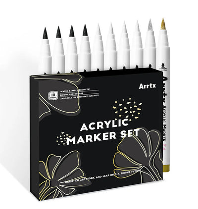 Arrtx Acrylic Marker - 10 Set - White and Metallic