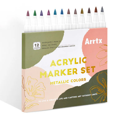 Arrtx Acrylic Marker - 12 Color Set - Metallic Colors (12A)