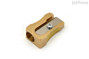 Brass sharpener for lead and colored pencils, double hole, wedge design.