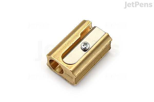 This handheld brass sharpener is small but easy to hold, thanks to the grooved indents running along either side. It sharpens pencils to a medium point and is safe to use with fragile pencils, making it a great choice for sharpening colored pencils.