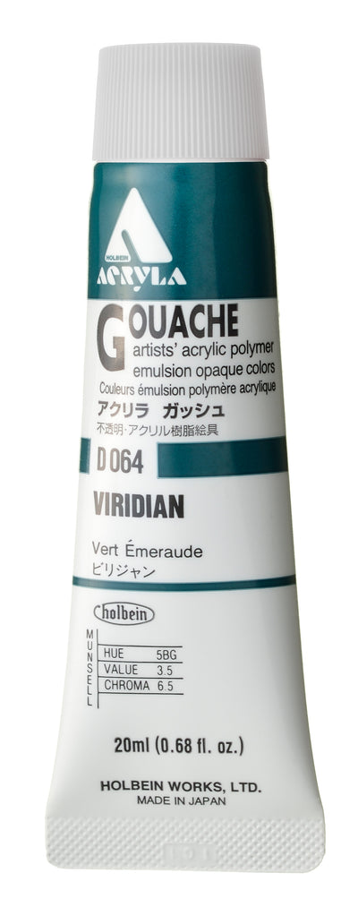 109 highly pigmented colors in 20ml tubes. Holbein Acrylic Gouache moves, reacts, blends and feels like traditional gum arabic gouache. Holbein Acrylic Gouache is water resistance once dry.