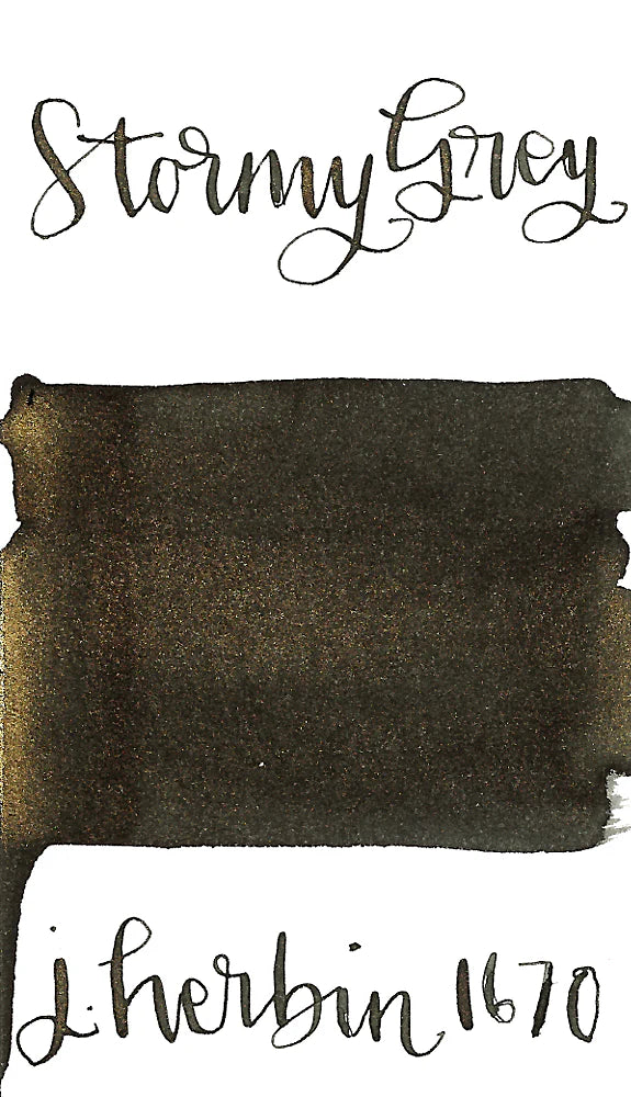 The Inks 1670, from the exclusive Jacques Herbin Prestige Collection, commemorate the year Jacques Herbin was founded in the heart of Paris. These deep, intense colours are illuminated with gold glitter. Gris orage is a dark colour with flashes of gold that give this ink depth and relief. 1670 inks are suitable for fountain pens, roller pens, glass nibs and fountain holders. The waxing of the stopper and the seal on the bottle are handmade in the Jacques Herbin workshop. Made in France.