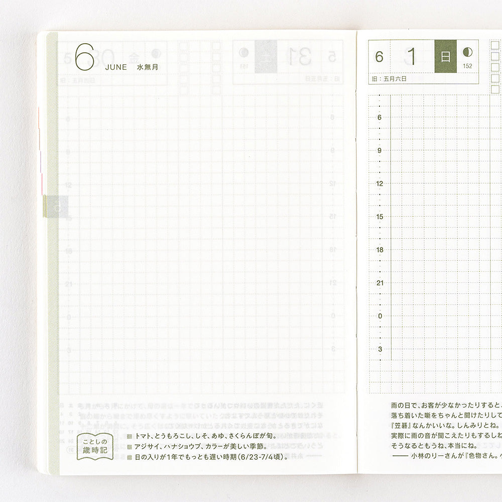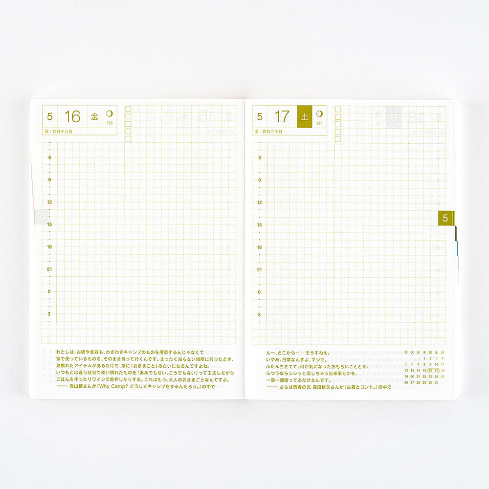 This portable A6 size Hobonichi Techo book has a page per day. Features thin yet durable