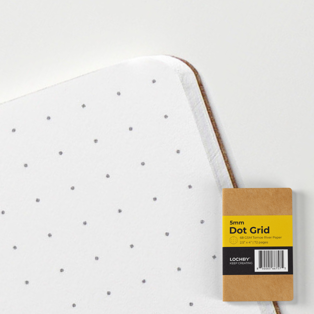 Tomoe River Notebooks LUXURY TOMOE RIVER PAPER: Write effortlessly on 68 gsm paper that guarantees no bleed-through or feathering, making every writing session a pleasure. Acid-free to preserve your creations. REFILLABLE DESIGN: As a refill for the LOCHBY Field Journal, it promises endless space for your thoughts, making it more than a notebook—a tool for continuous inspiration. Cover Kraft Paper Inner Pages 68 GSM Tomoe River Paper, White Dot Grid 5mm Grid Size