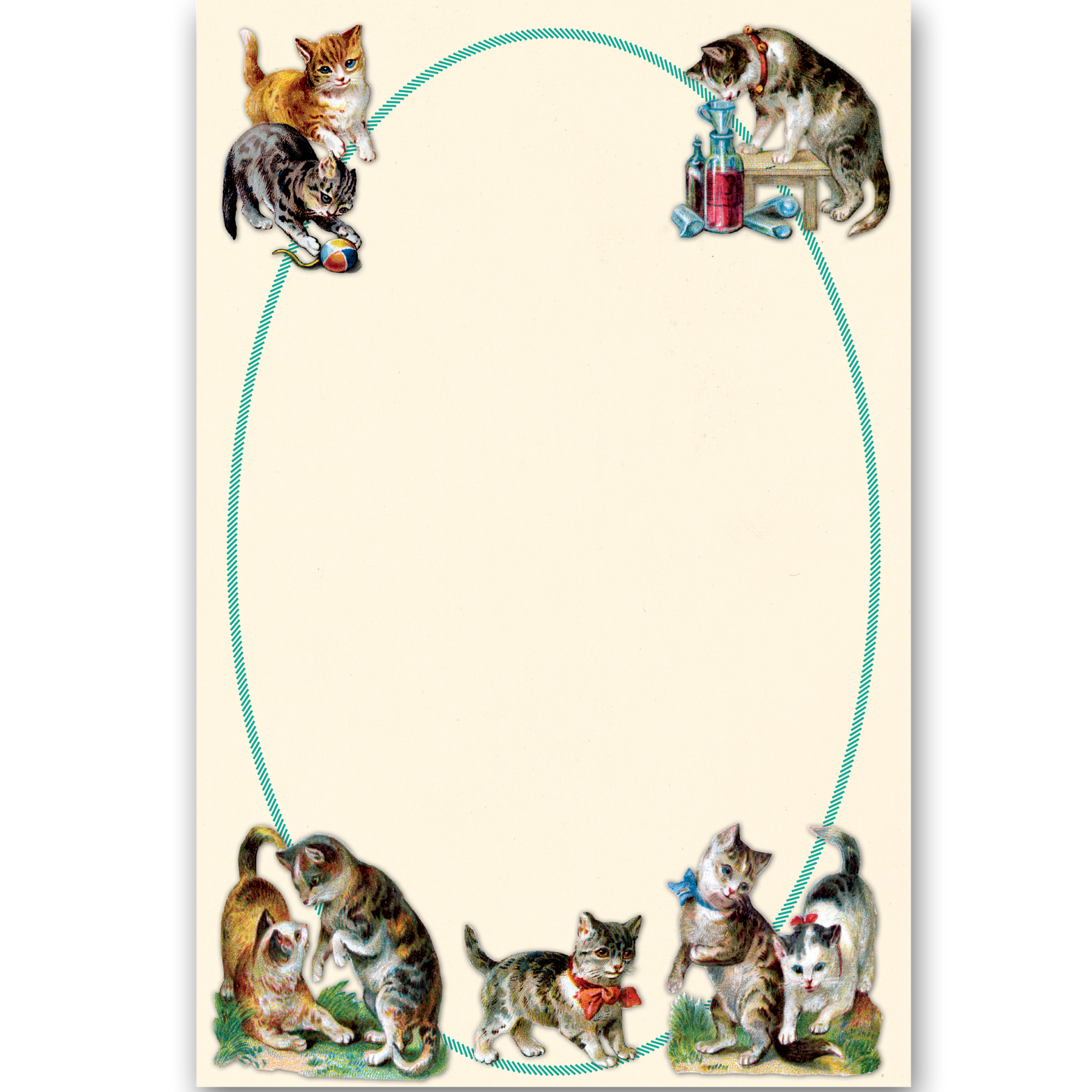 Embrace the art of letter writing with this enchanting stationery set! We've adorned these letters and matching envelopes with charming kittens cavorting around the border. Whether you're writing a note to thank, encourage, congratulate, or simply express "I'm here and I'm thinking about you," the act of writing becomes a pleasure for both the sender and the recipient! Adding your message to attractive stationery not only adds a personal touch but also enhances your words with visual beauty.