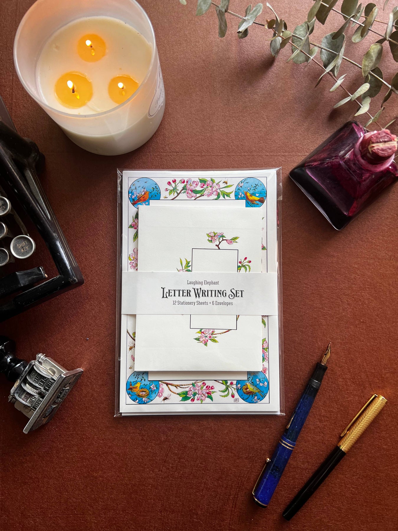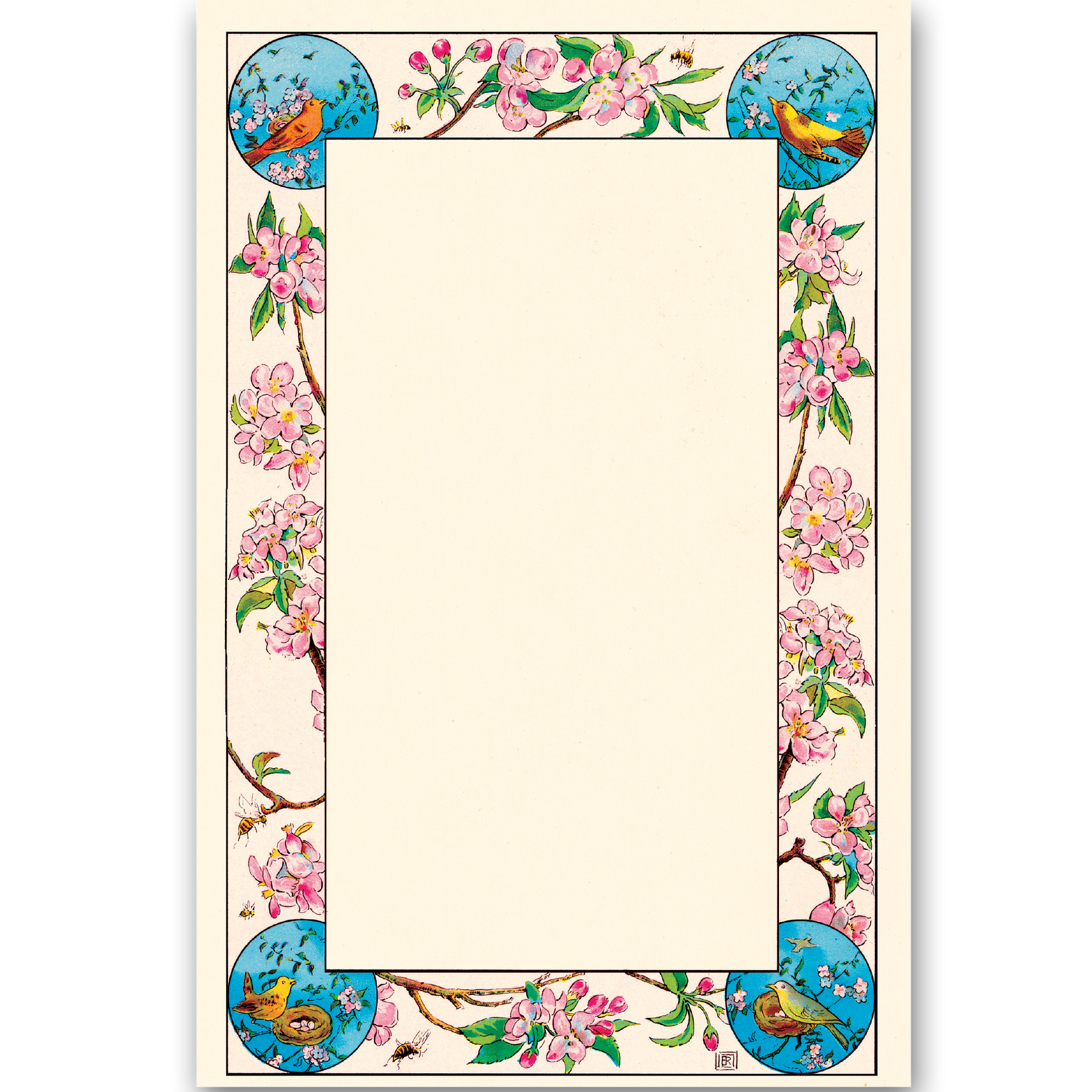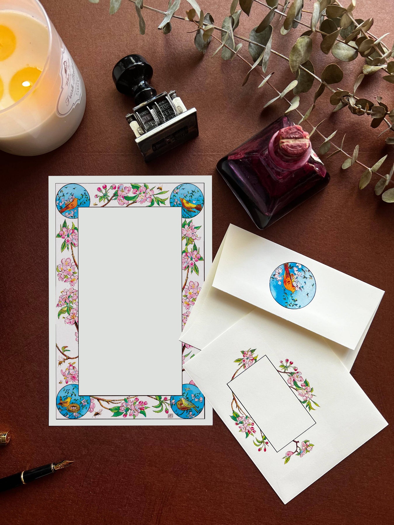 Embrace the art of letter writing with this enchanting stationery set! We've adorned these letters and matching envelopes with apple blossoms and singing birds. Whether you're writing a note to thank, encourage, congratulate, or simply express "I'm here and I'm thinking about you," the act of writing becomes a pleasure for both the sender and the recipient! Adding your message to attractive stationery not only adds a personal touch but also enhances your words with visual beauty.