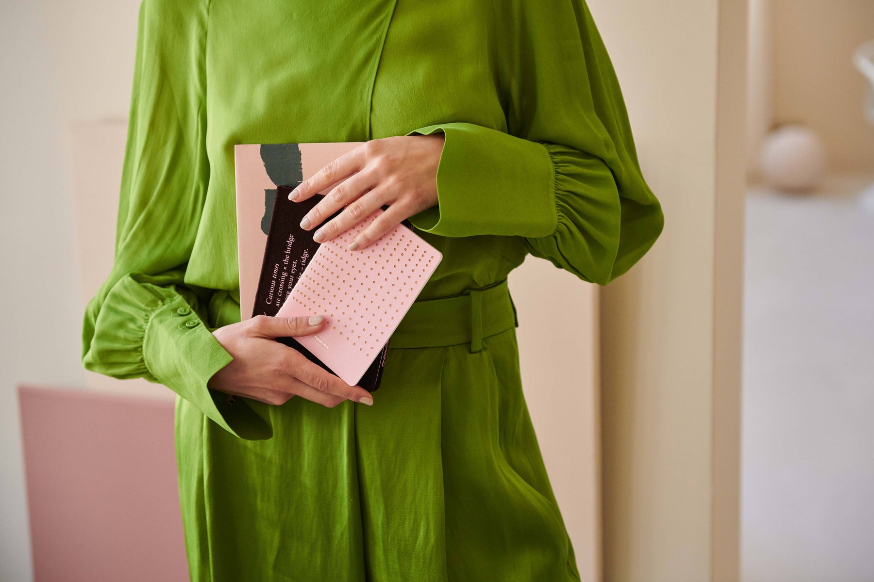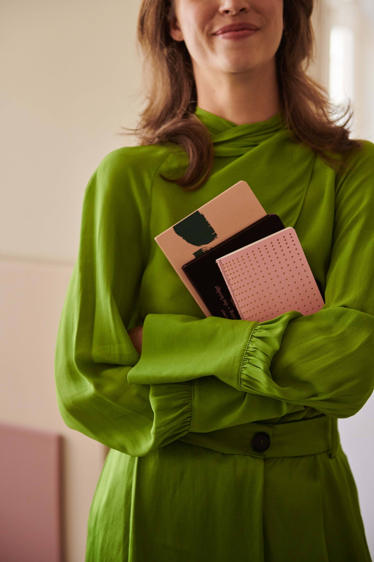 This nice journal is just a bit larger than the A6 size. It has shiny foil details on the front and two reading ribbons. It feels like it has been handmade with the craftsmanship of the past. The inside is printed on FSC paper. That means that the raw material for the FSC® paper comes from responsibly managed forests. We like that! The inside is printed with a dotted grid. At the back, you will find a handy pocket for all the little things and loose notes you want to keep. It is a journal that Tinne and Mia love themselves. specifications - cover: hardcover - lined with book cloth - foil print in gold - Inside: 100 grams of off-white FSC paper - 160 pages of content - dotted grid - size: 160x130x15 mm - 6,3x5,3x0,6 inch - one storage pocket in the back - two reading tapes - sewn bound