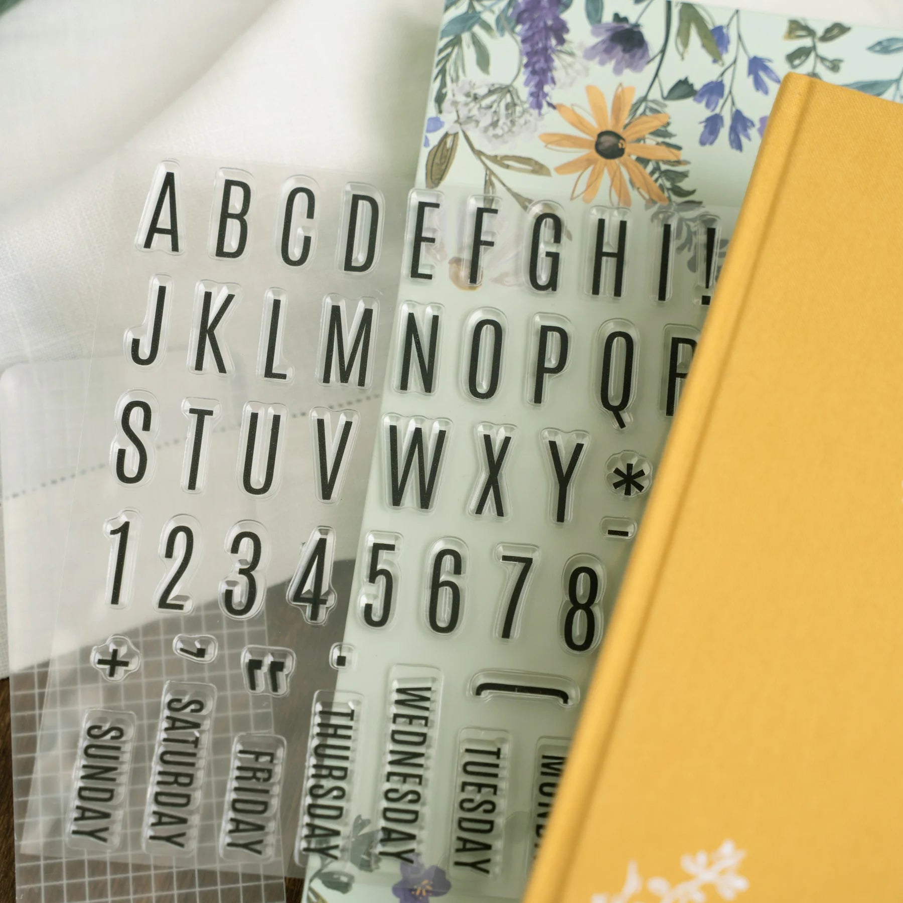 Add your titles and headers with an all caps alphabet, numbers, and extra stamp set. Includes a black ink pad and 6x16cm acrylic block with 5mm grid for easy alignment!