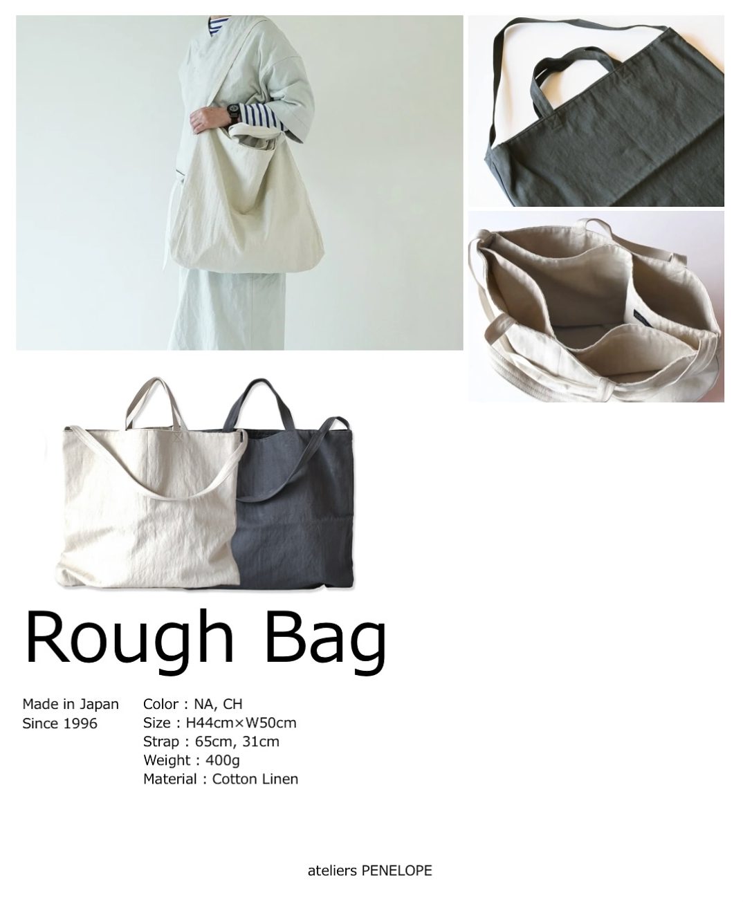 This is a non-matching 2-way bag made of original cotton herringbone weaving material.