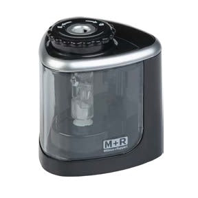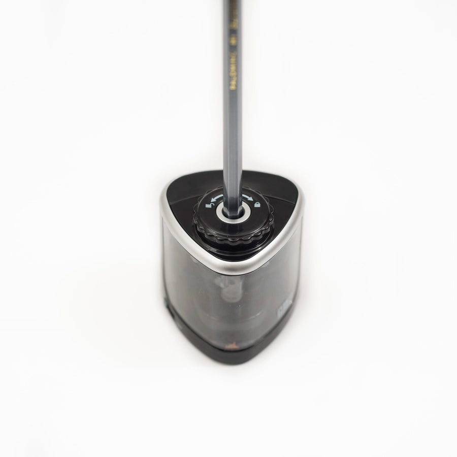 This very compact battery operated sharpener is powered by 2 x AAA batteries (not included). It works with standard pencils and most larger sized European brands of pencils.