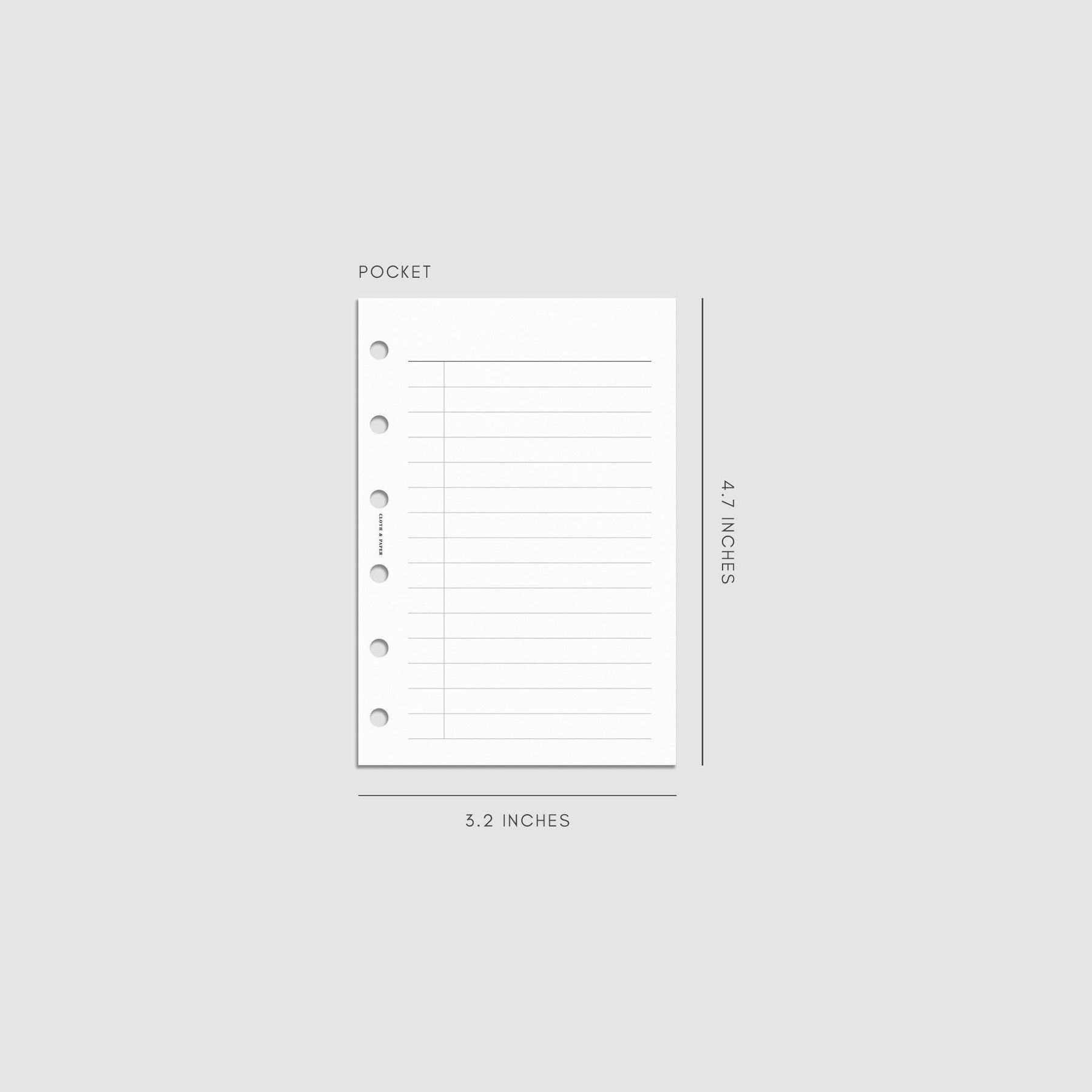 Stay organized and tackle your to-dos with ease using Task Planner Inserts—the ultimate tool for your planning needs. Featuring a simple, yet versatile design, this insert offers a lined layout with a handy left-hand column perfect for checking off completed tasks.