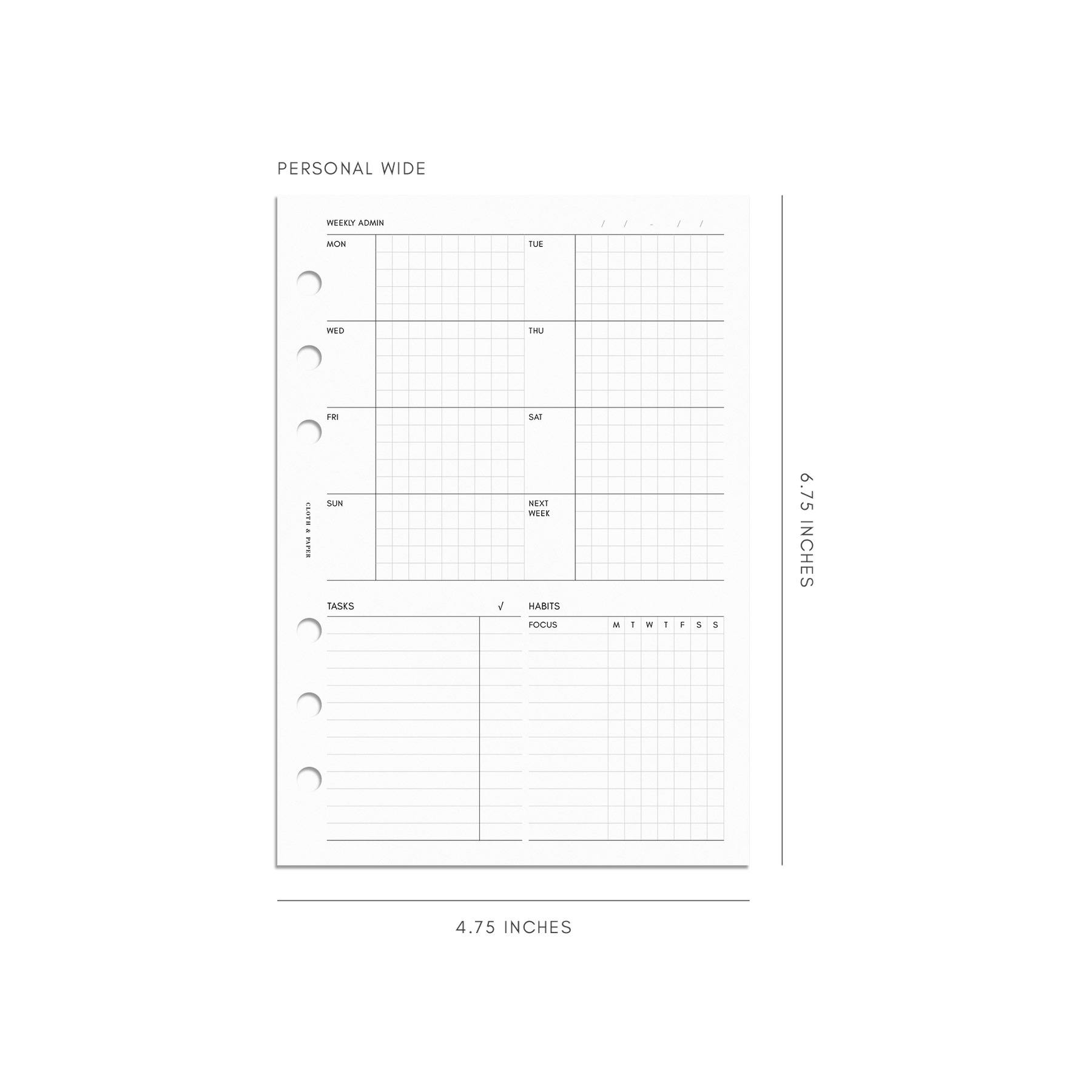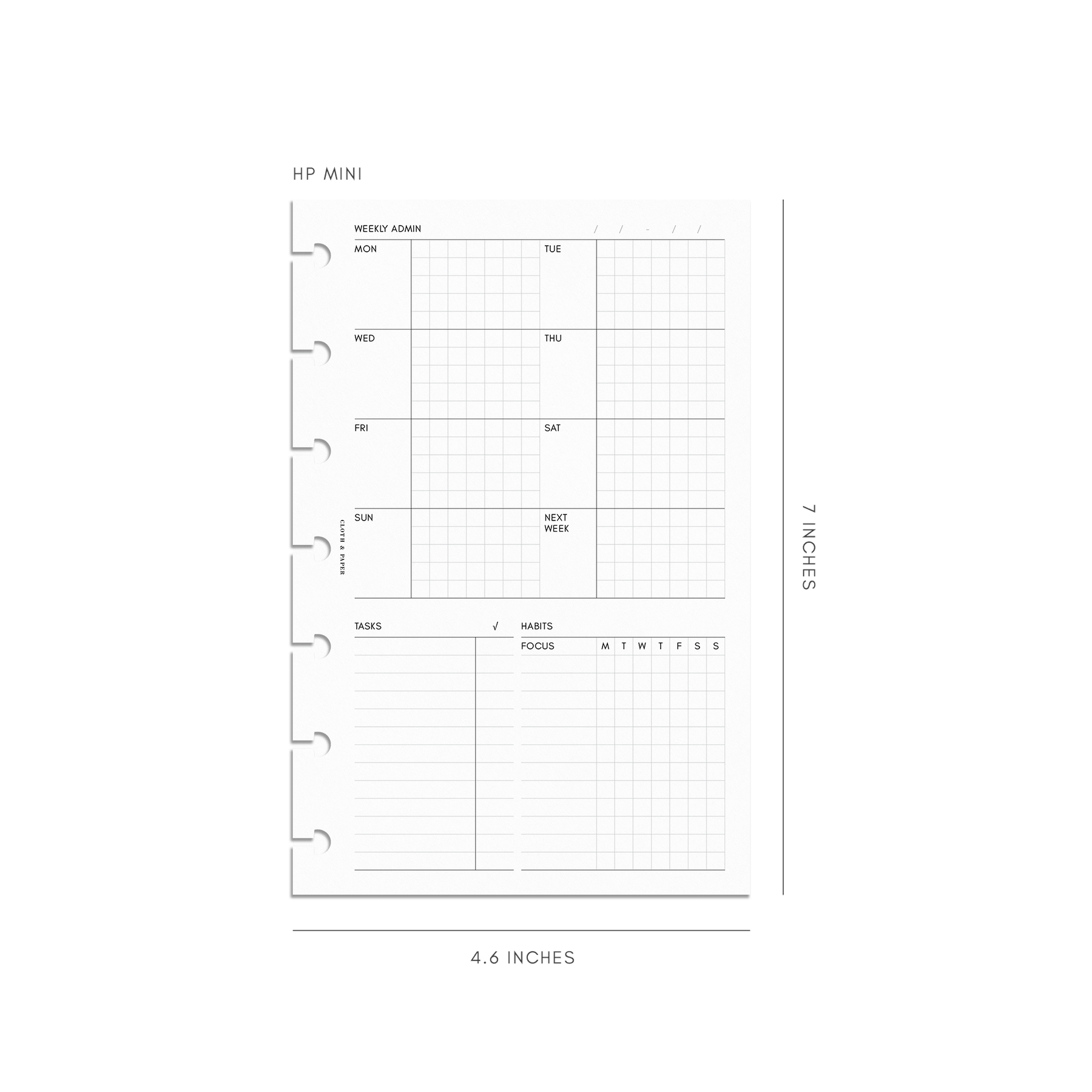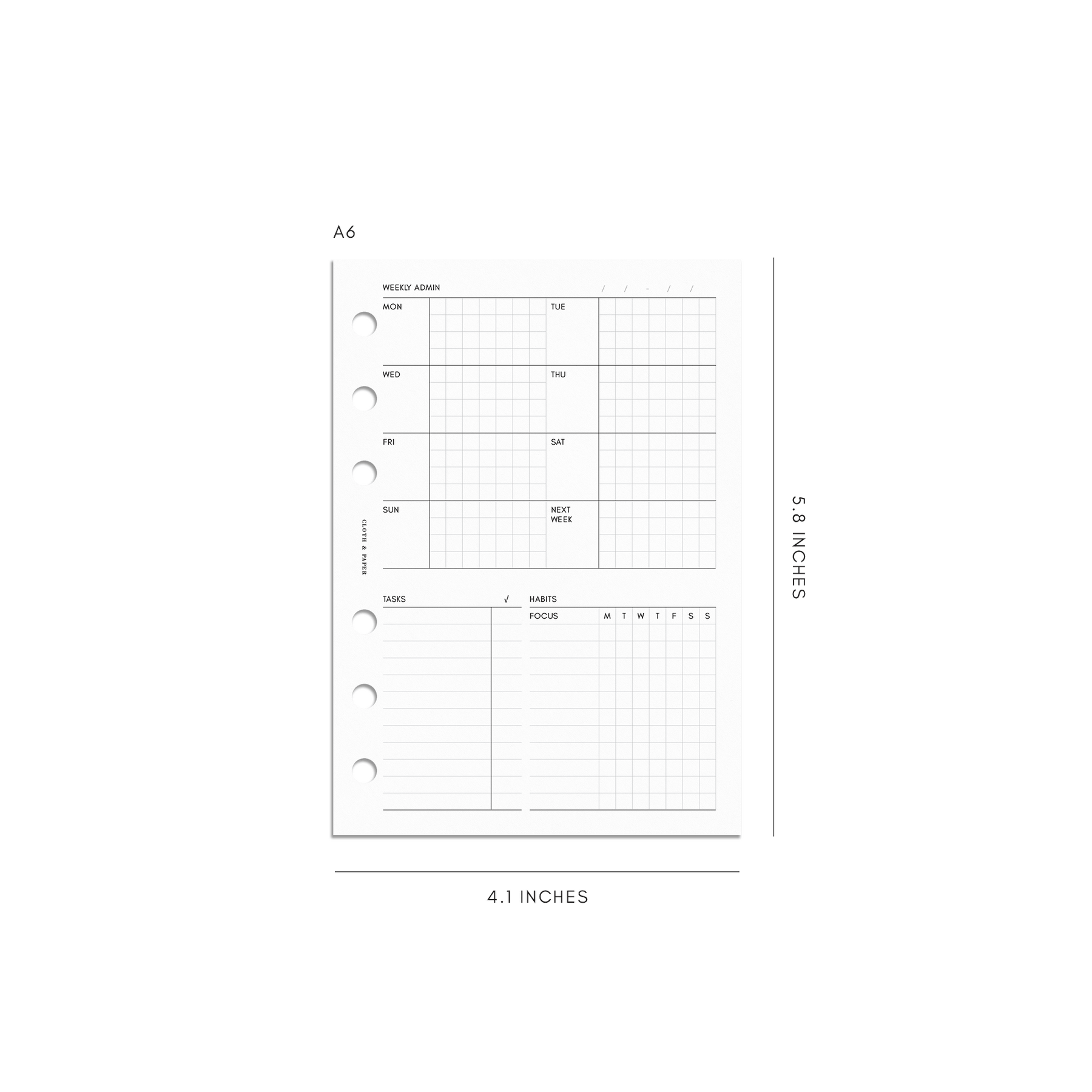 Our Weekly Admin Planner Inserts allow you to easily plan out your week while also keeping track of your important tasks and daily habits.