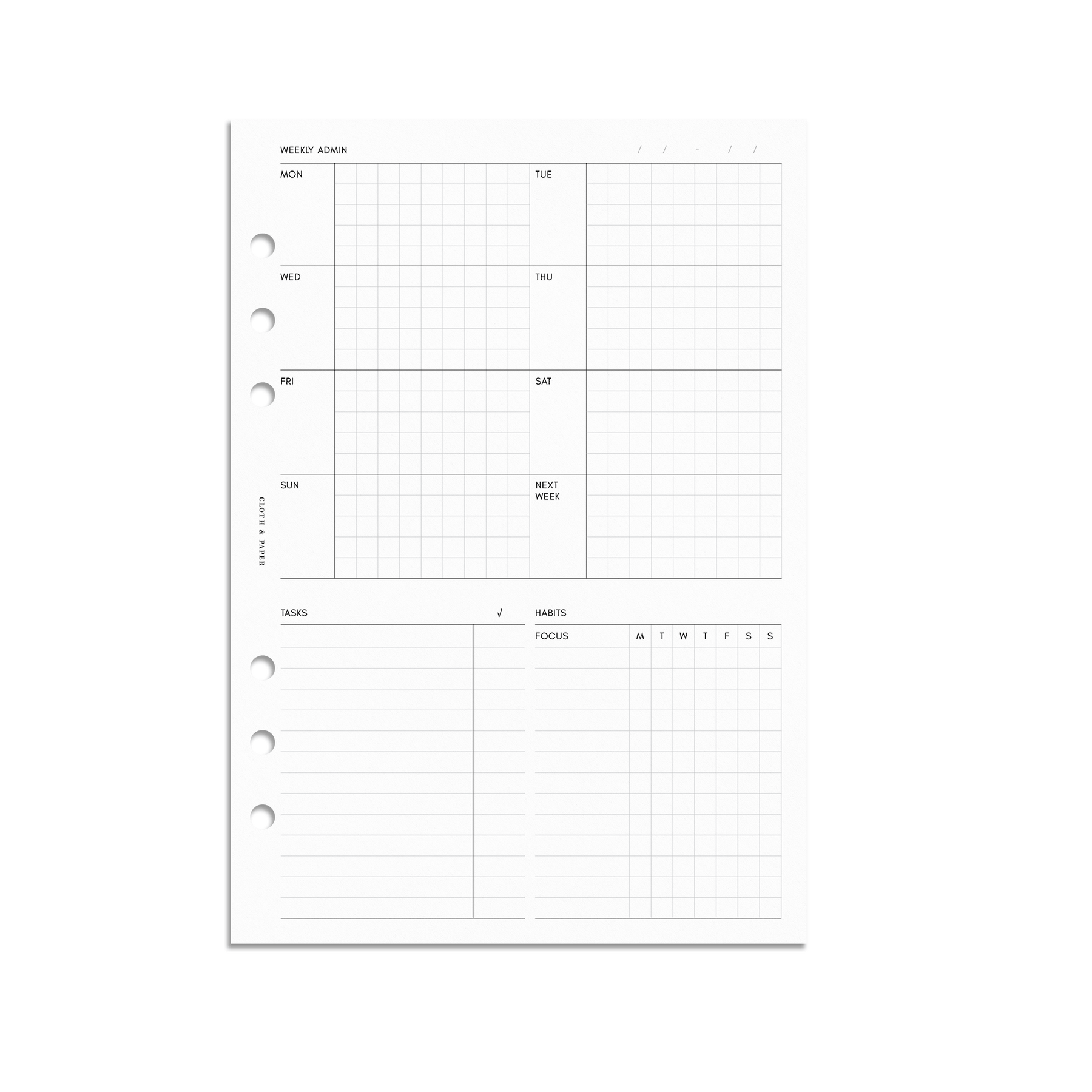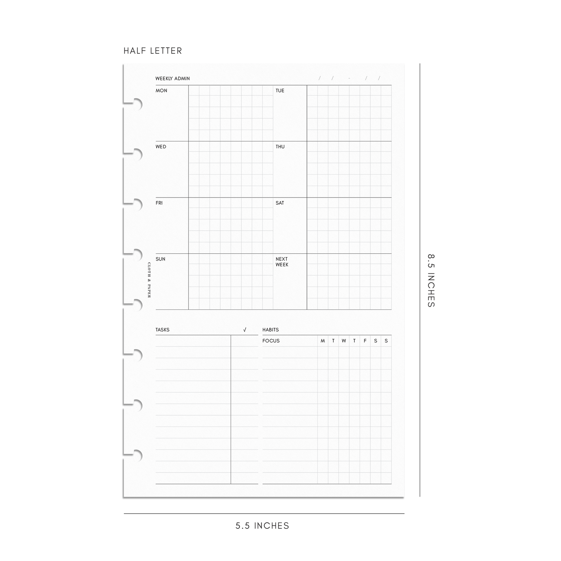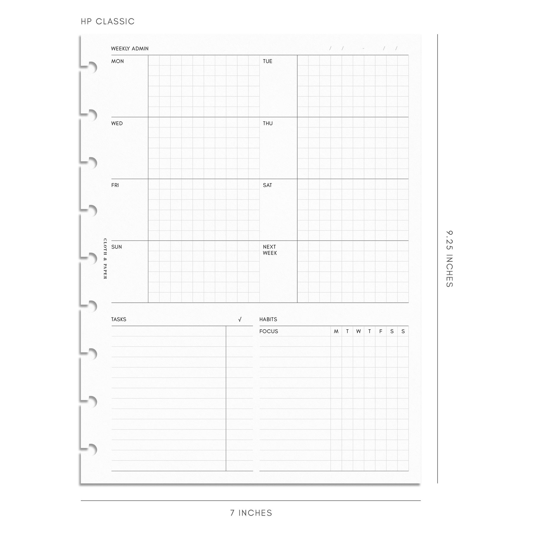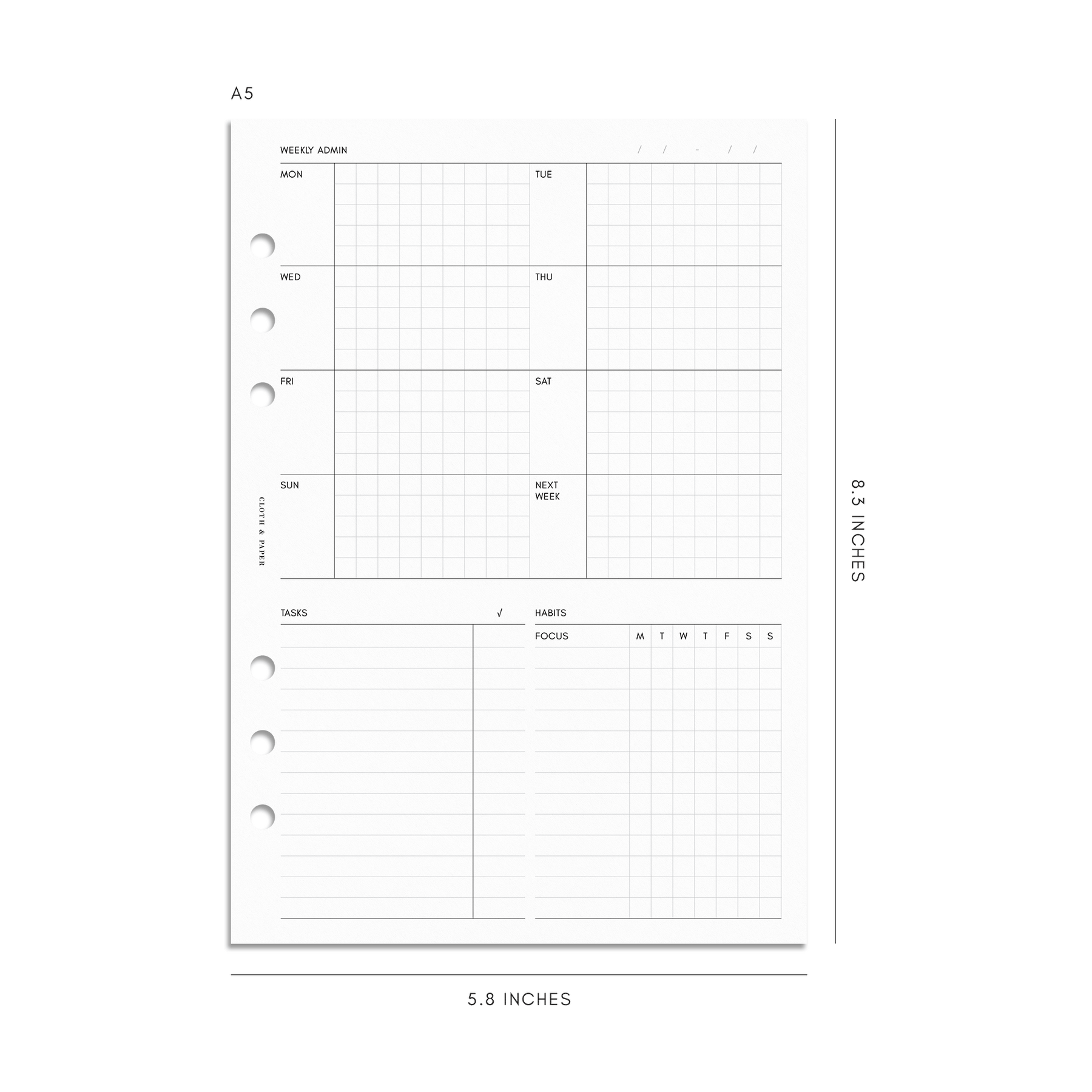 Our Weekly Admin Planner Inserts allow you to easily plan out your week while also keeping track of your important tasks and daily habits.