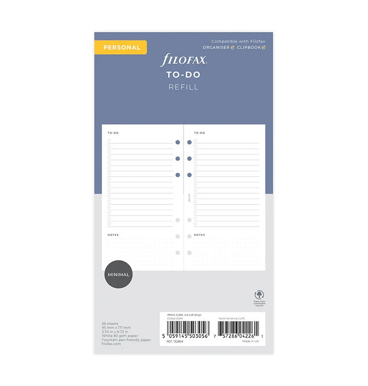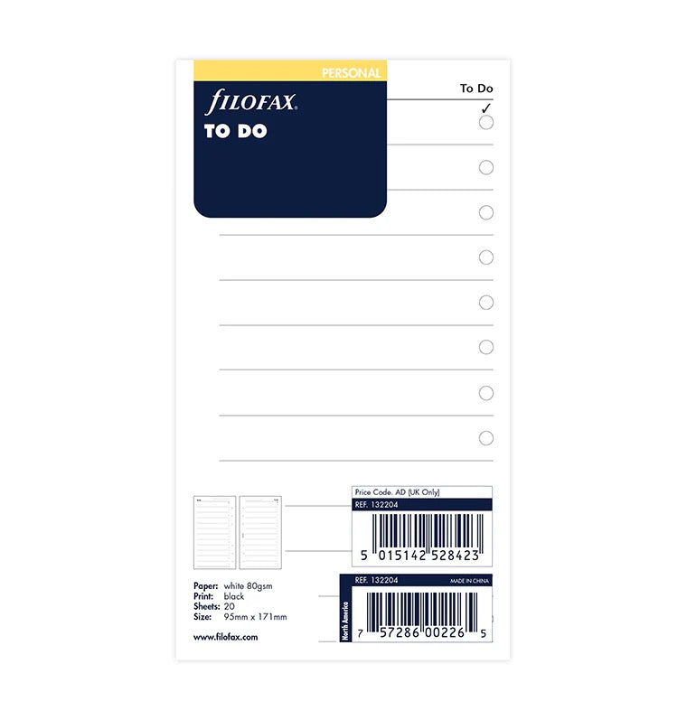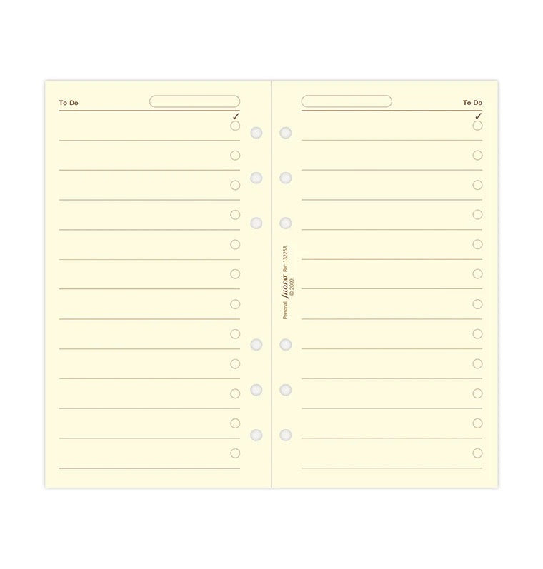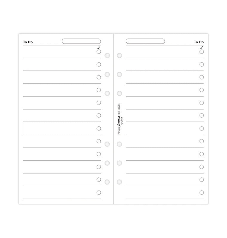 The ultimate planning accessory for your Filofax personal organizer or personal size Clipbook. Remember all those important tasks with our 'To do' refill featuring corresponding tick-box tracker.