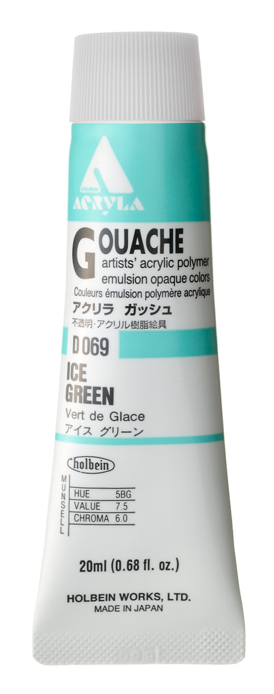 109 highly pigmented colors in 20ml tubes. Holbein Acrylic Gouache moves, reacts, blends and feels like traditional gum arabic gouache. Holbein Acrylic Gouache is water resistance once dry.