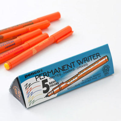 A set of 5 alcohol-based permanent ink pens with a 0.5mm fine tip by Penco.