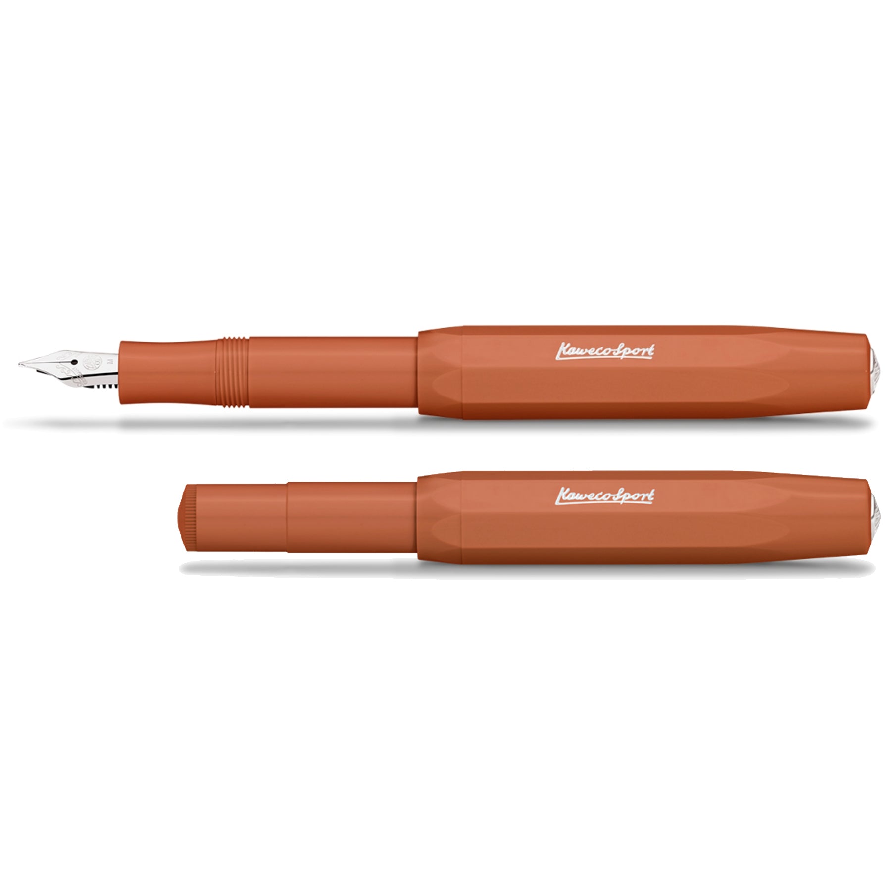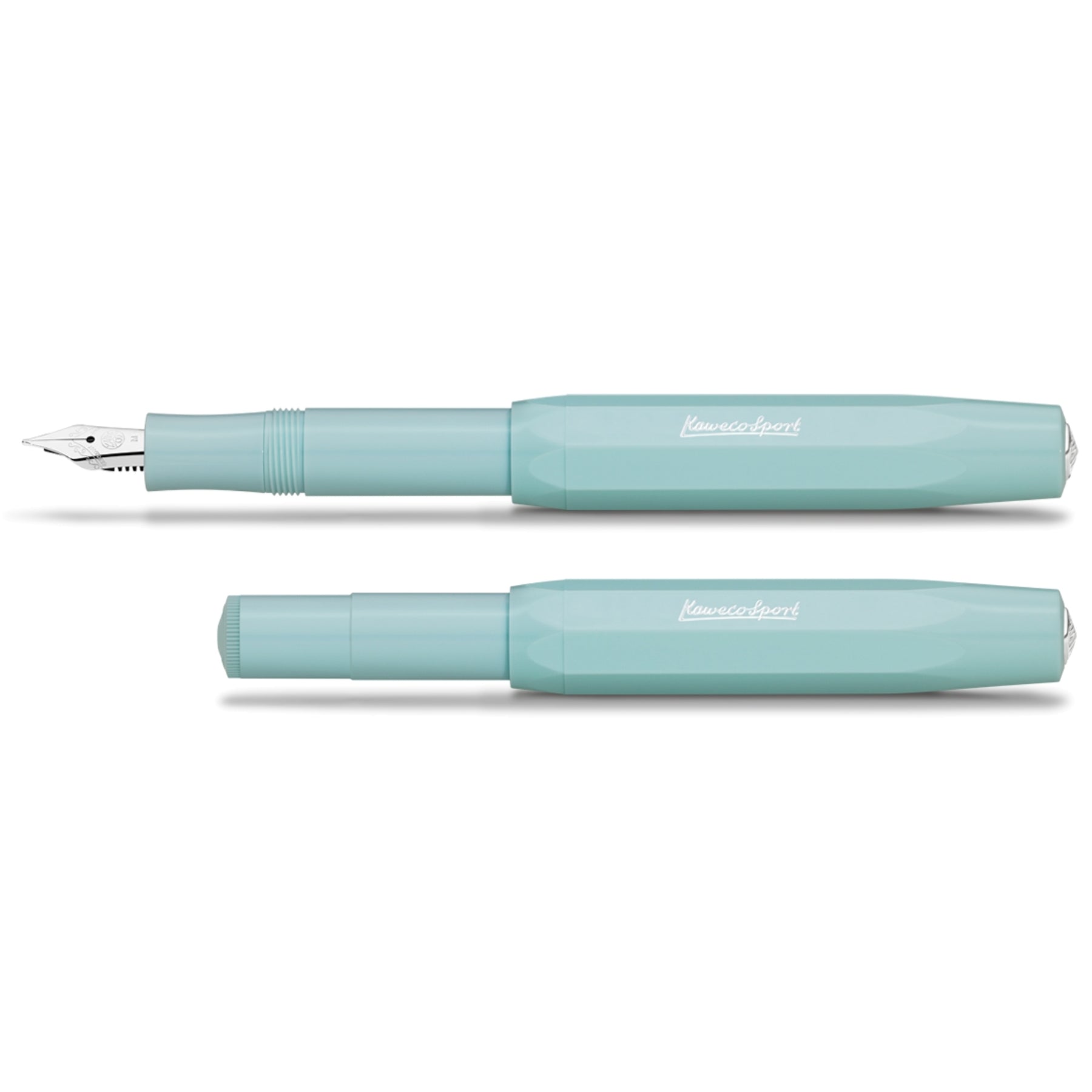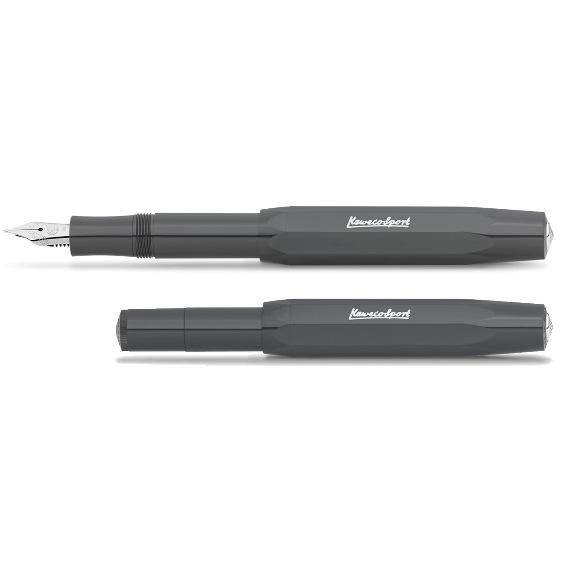 Enjoy writing again!  Made in Germany since 1883,  Kaweco designed the Skyline Sport Fountain Pen in 1911.  The stylish, compact design is perfect for the purse or pocket, and ideal for first time fountain pen users.  Measuring just 4" when closed, adding the cap to the end when writing extends the length to 5 1/4". Crafted from a glossy plastic in beautiful colors, each pen is stamped silver foil, and has a silver nib.  Each pen comes with one cartridge of blue ink. Choose nib size for medium or fine lined writing.