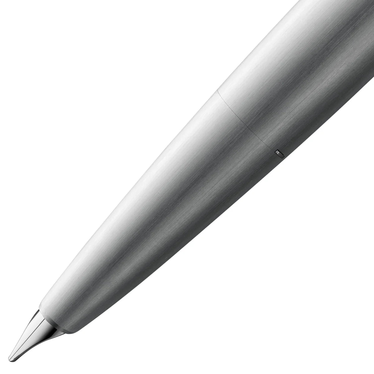 Fountain pen / piston operated filling system / fibreglass / fittings: stainless steel, matt brushed finish / 14 ct. gold nib, platinum coated
