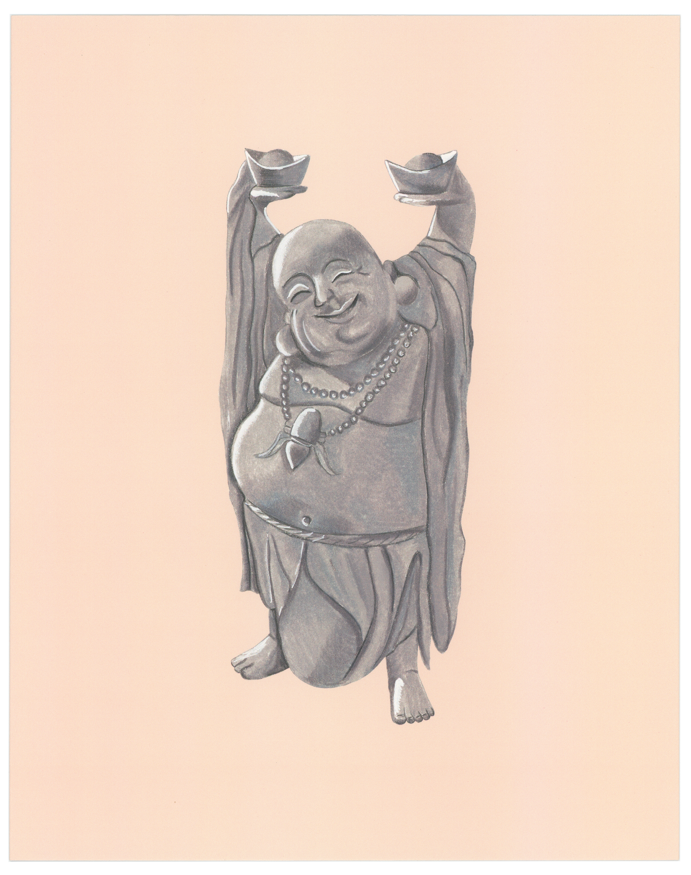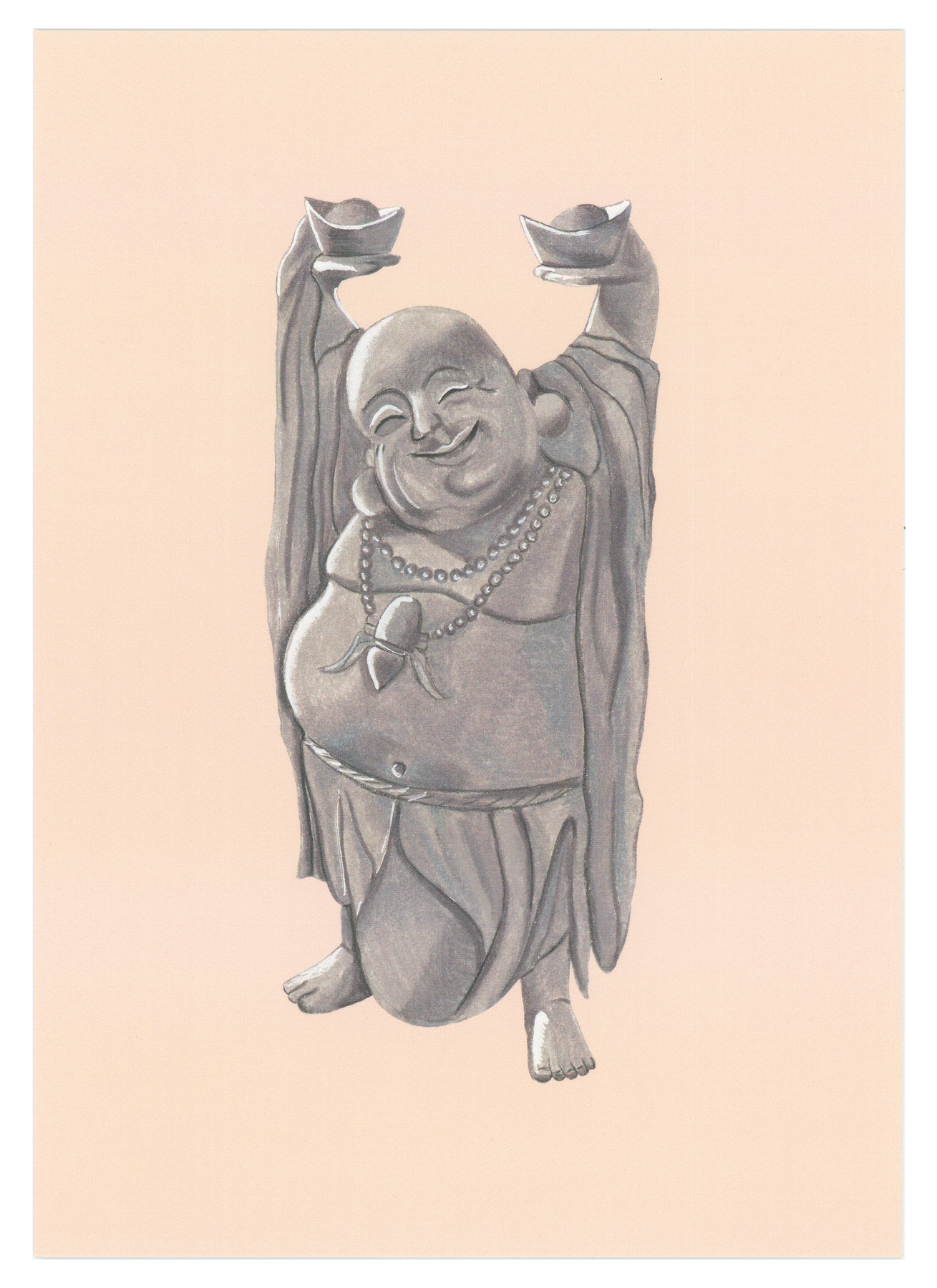 Said to bring prosperity and wealth with his upraised hands, we love this image of the happy Buddha.