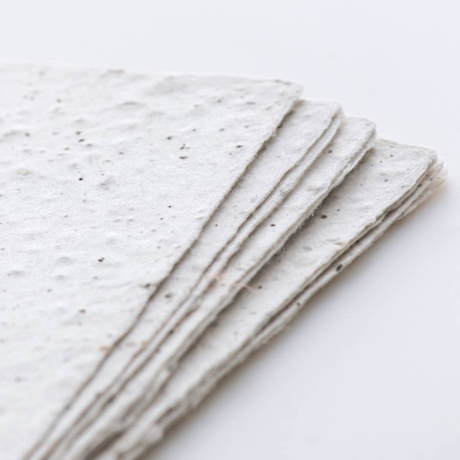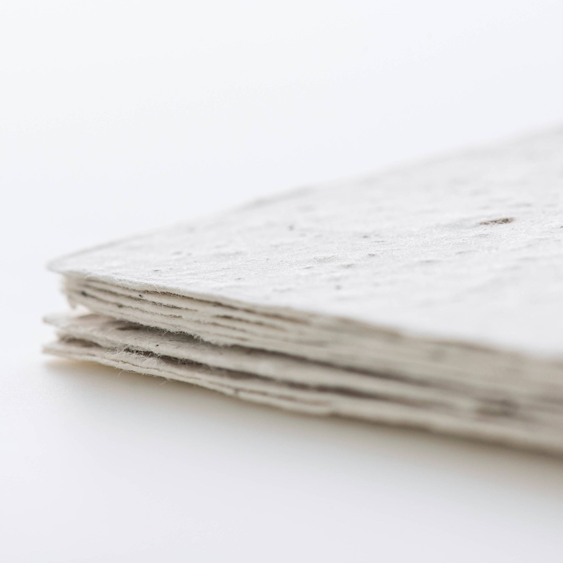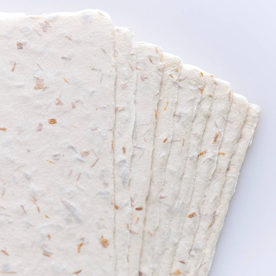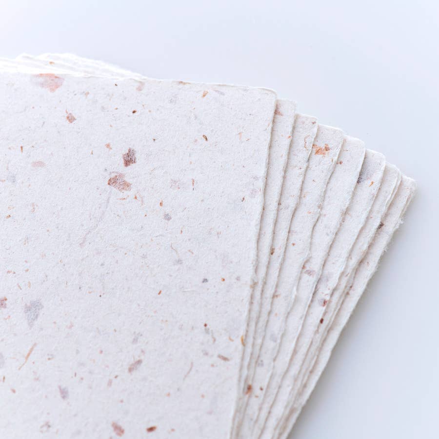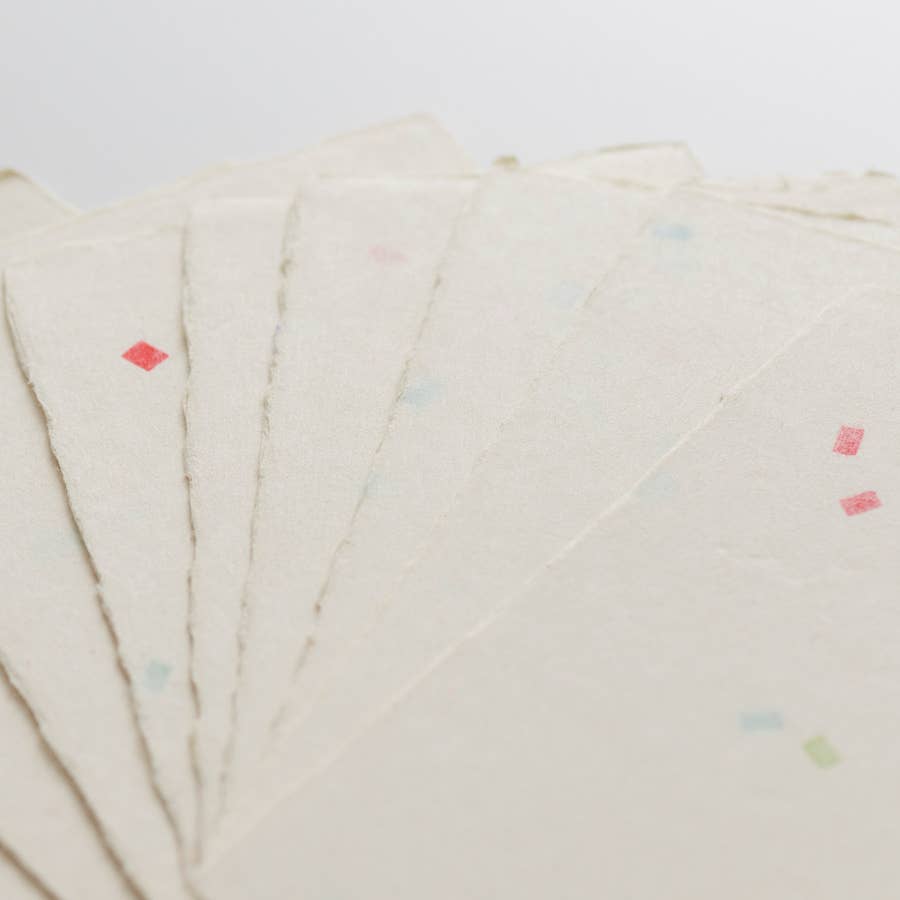 Thick handmade cards suitable for many types of fine art, crafts and printing. Made in the "Tamezuki" method, an East-meets-West style of papermaking that allows for thicker sheets to be made. Each set includes ten cards measuring 3.9" x 5.9". Made of kozo, alpha cellulose and variety of infused materials or mixed pulp. Made by Awagami.