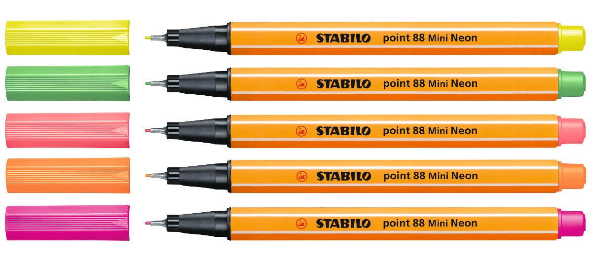 STABILO point 88 Mini is mini version of the well loved point 88 fineliner and fits perfectly in any pencil case. With its 0.4mm fine tip, the STABILO point 88 Mini is excellent for all kinds of projects - from jotting down notes, revision, and mind-mapping. This pen is suitable for the whole family with a metal encased tip to ensure quality and prevent breakages. Its special formula ink will not smudge or dry out due to its long cap-off time. The STABILO point 88 Mini and its excellent colors make it more than just a pen - it’s a favorite!