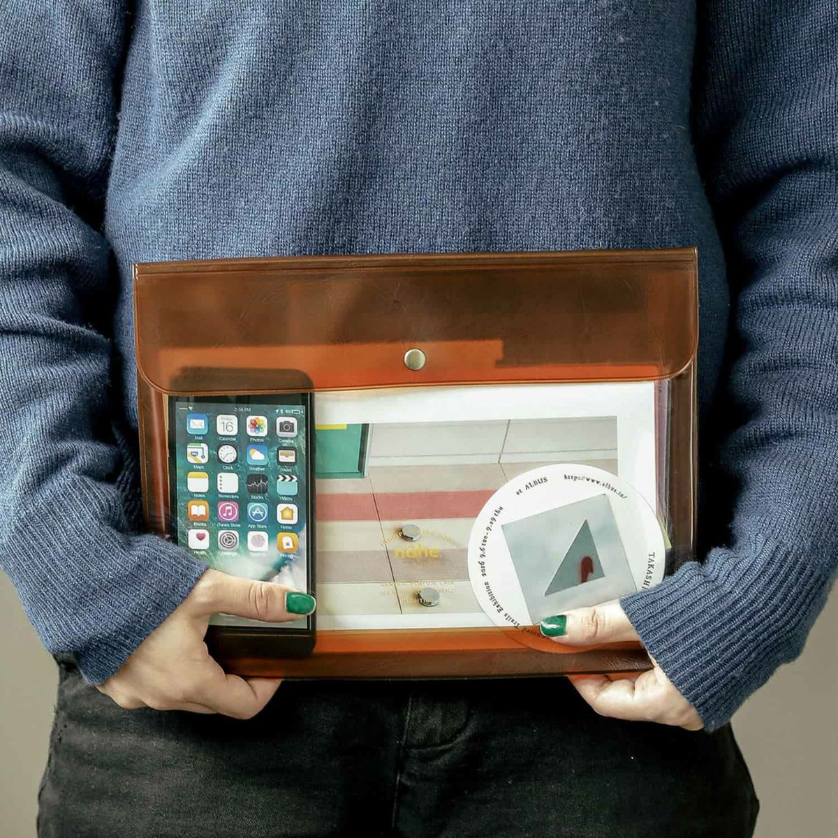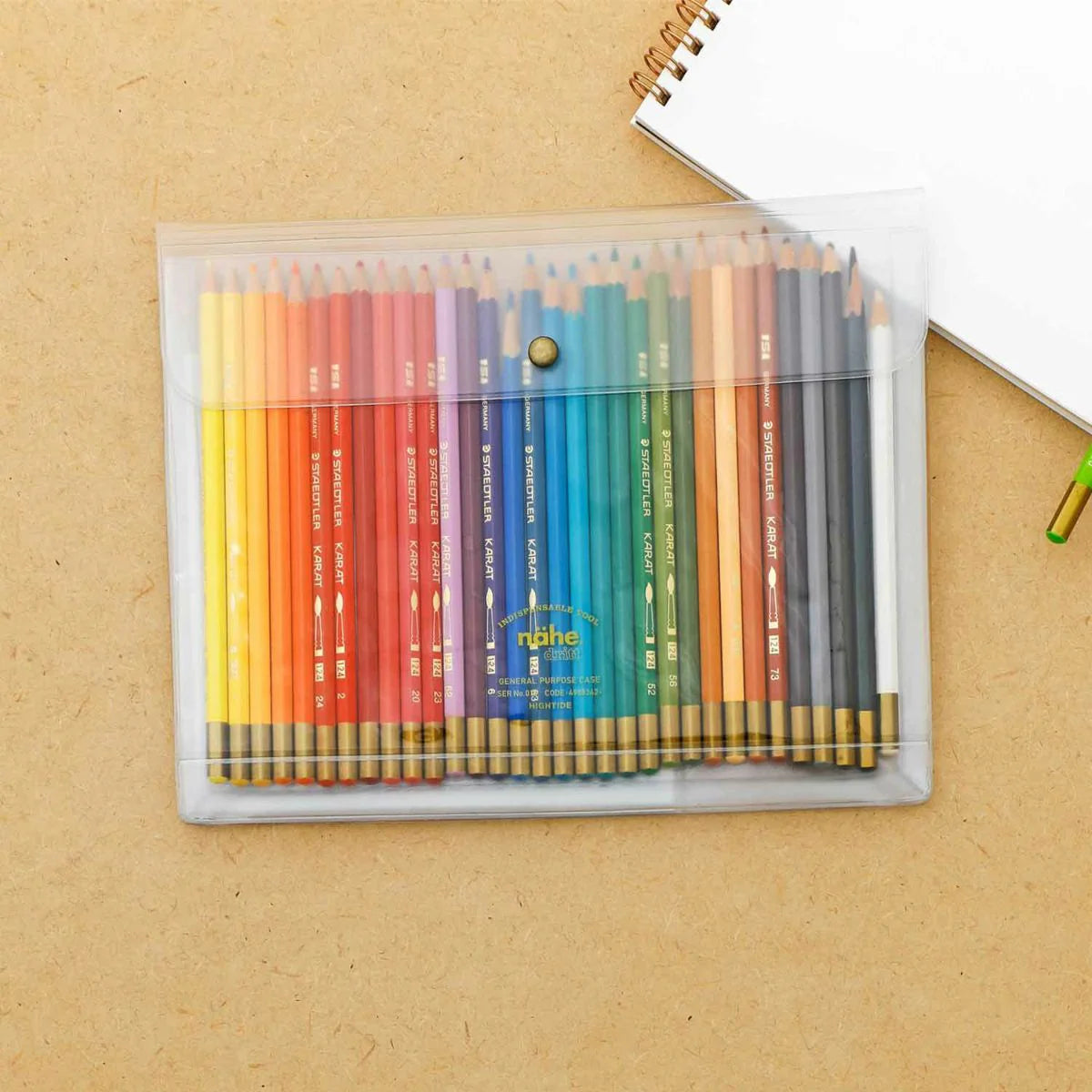 A gusseted general purpose case made of PVC with a transparent front by Hightide. Part of nähe collection.