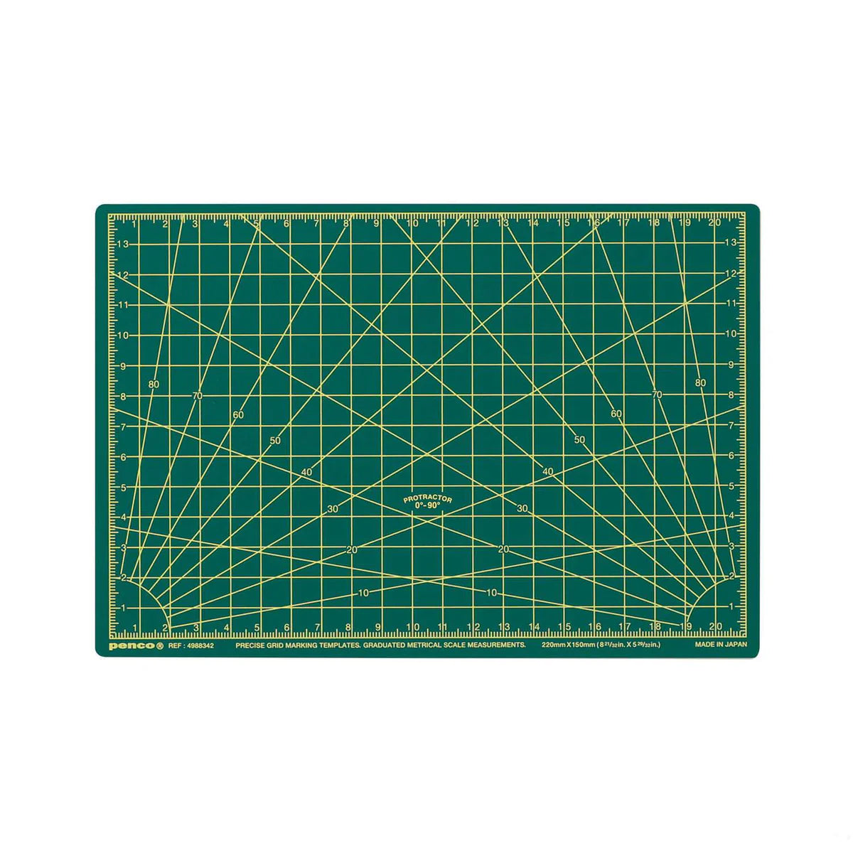 A superior quality 5 layer-construction PVC cutting mat by Penco, developed with a veteran cutting mat maker from Japan. The A5-size cutting board is sturdy, bend or flake-proof, and safely grips the blade as well as paper with its subtly textured surface. The blade mark disappears, absorbed by the soft yet tough PVC surface, where plenty of guidelines are printed.