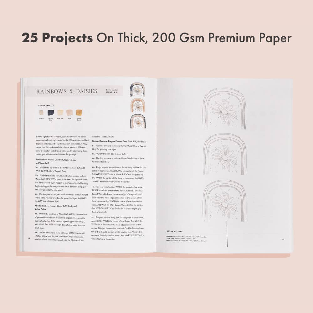 Build your watercolor skills with confidence with these 25 beautiful and beginner-friendly new projects on premium watercolor paper! From artist Sarah Simon, author of 2021's bestselling Watercolor Workbook, comes 25 new projects that celebrate flowers, feathers, and animal friends.