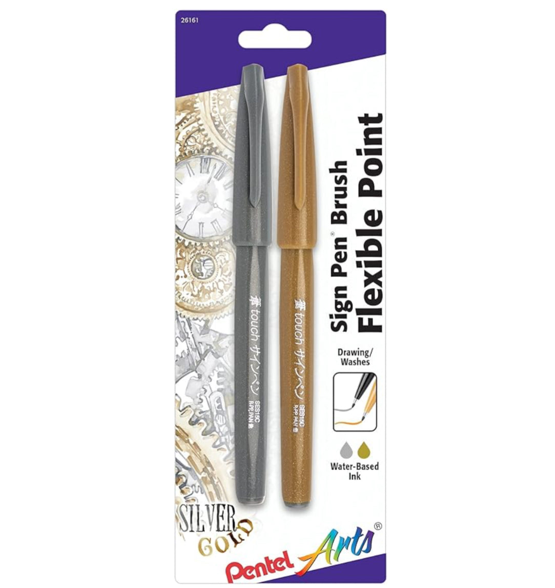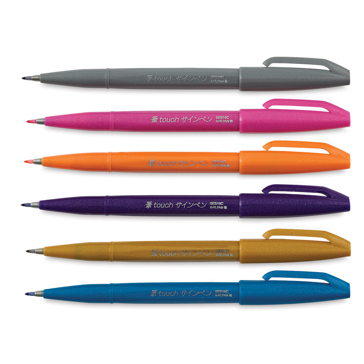 Pentel Arts Brush Tip Sign Pens offer richly saturated colors that are fully blendable with water and Pentel Sign Pen colors. Dilute the tip with water to get a full range of values. The waterbased dye ink is bright and intense.