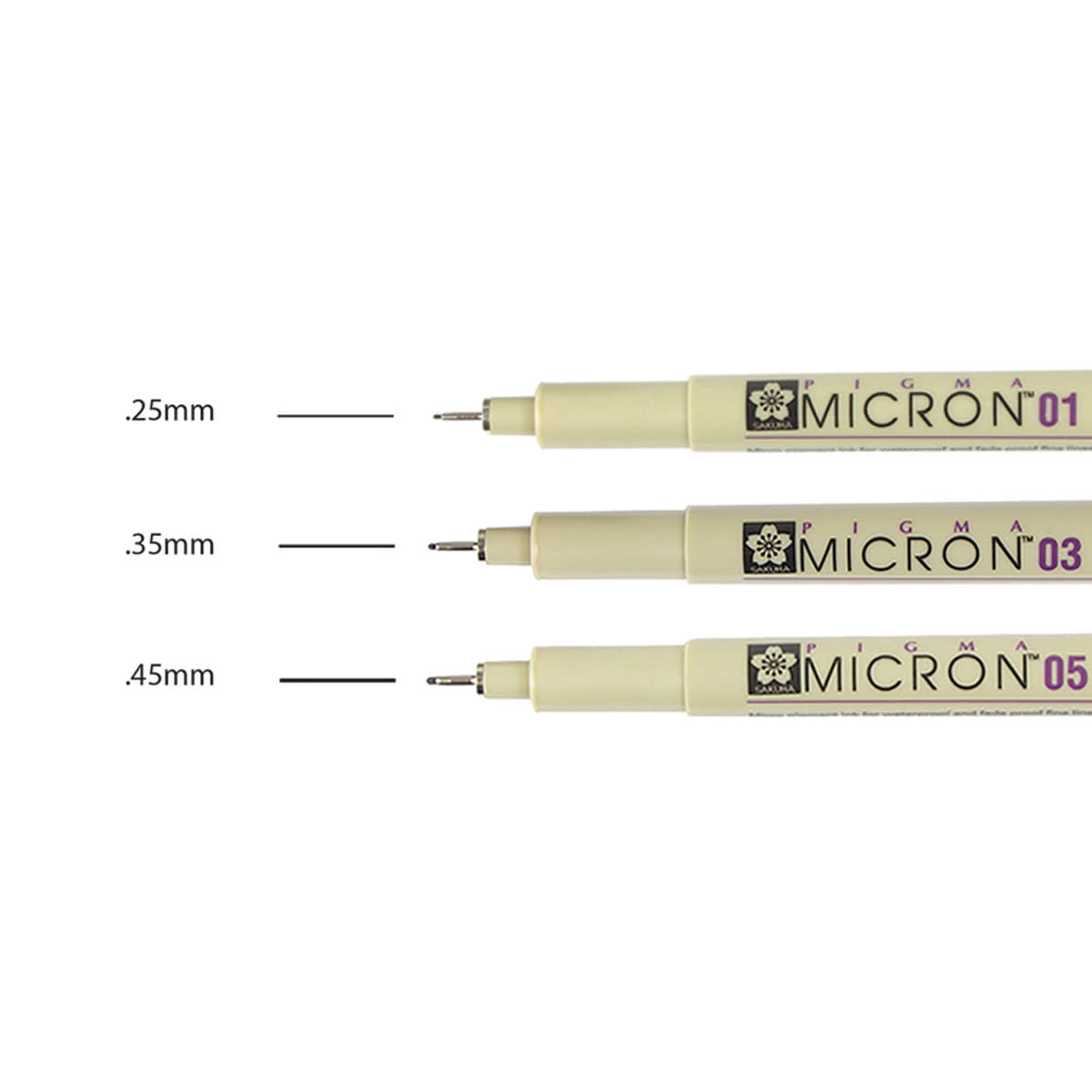 One each of 01 (0.25 mm), 03 (0.35 mm), and 05 (0.45 mm). Black ink.