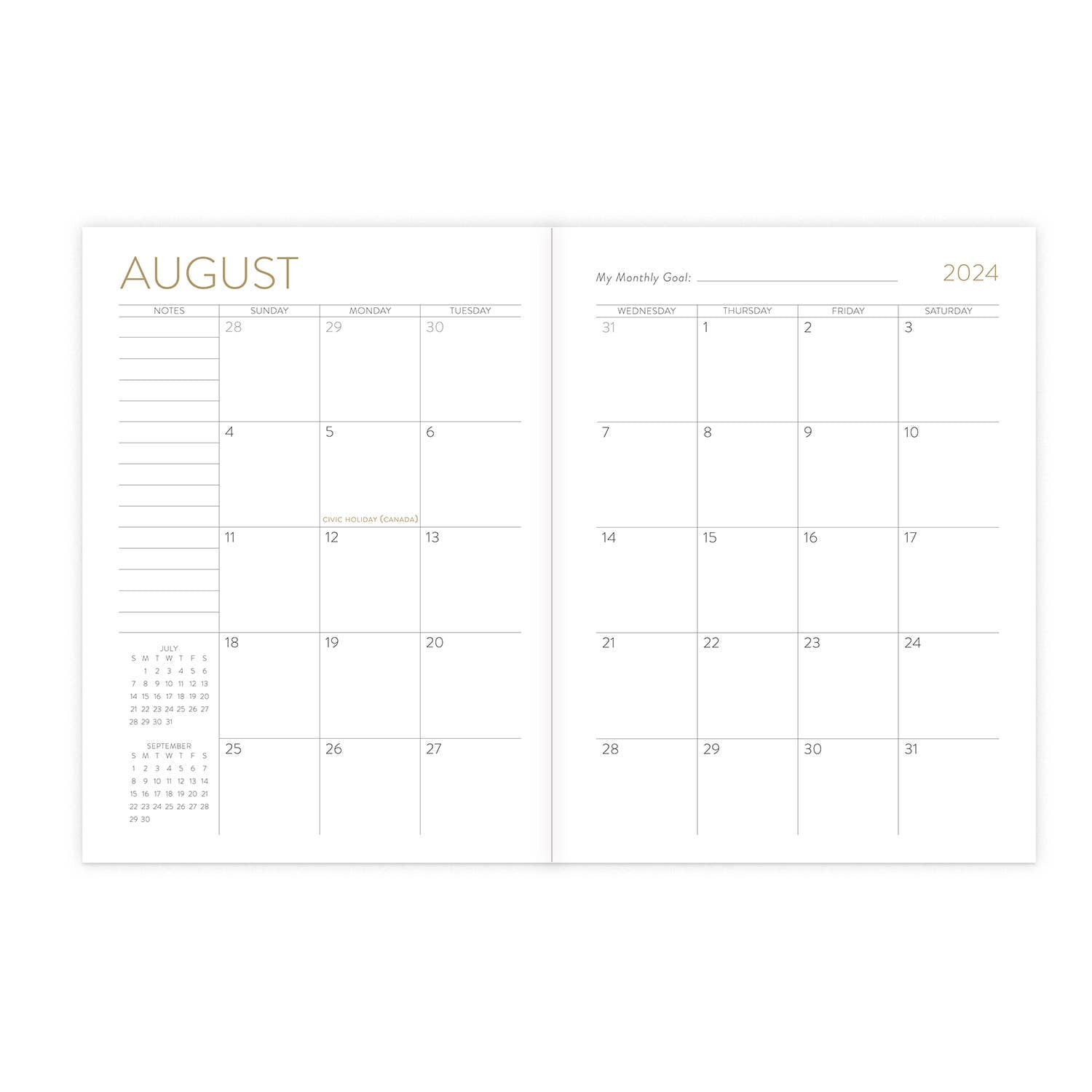 Seedlings NEW 17 Month On the Go Planner (Aug 2024 - Dec 2025) is the perfect planner to take along with you. Each 40 page planner includes a premium embossed soft cover with full foil details and full color liners. Lay-flat binding with monthly views with equal spacing for each day and even includes a place to add a monthly goal. Includes Year at a glance, Celebrations and schedule sections too. Seedlings PLANTABLE seed paper packaging is biodegradable and embedded with seeds. When the seed paper is planted in soil, the seeds grow and the paper composts away. All that is left behind are flowers!. Size: 6" x 8"