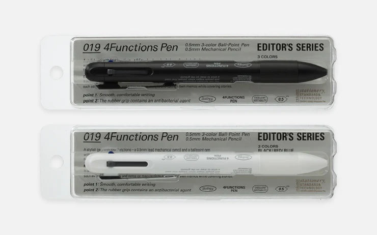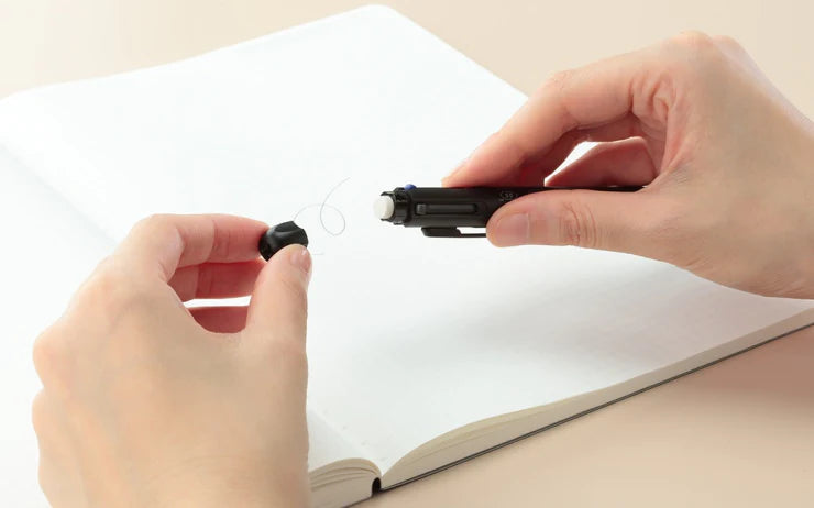 The Stalogy 4Functions Multi Pen contains a mechanical pencil and 3 vivid ballpoint ink colors. The instant-dry, smudge-free ink formulation is identical to the one in their well-loved Low Viscosity Oil Based Ink Ball Point Pen. The silk-touch finish of the barrel makes for a comfortable grip for long writing and editing sessions. Just like their notebooks, this multi pen is simple, elegant, and easy to use.