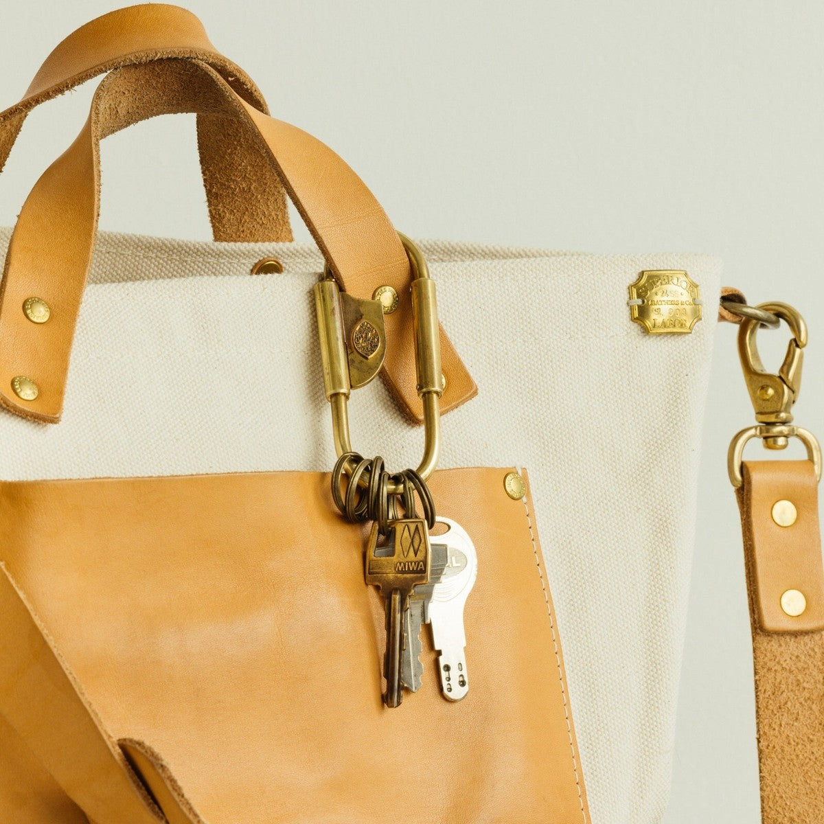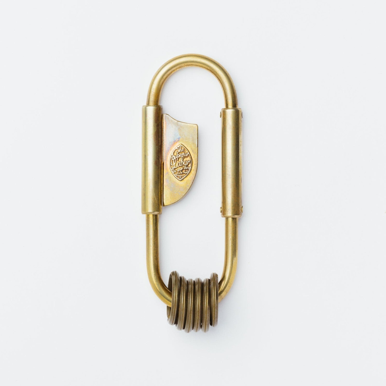 A standard brass carabiner, handmade piece by piece.