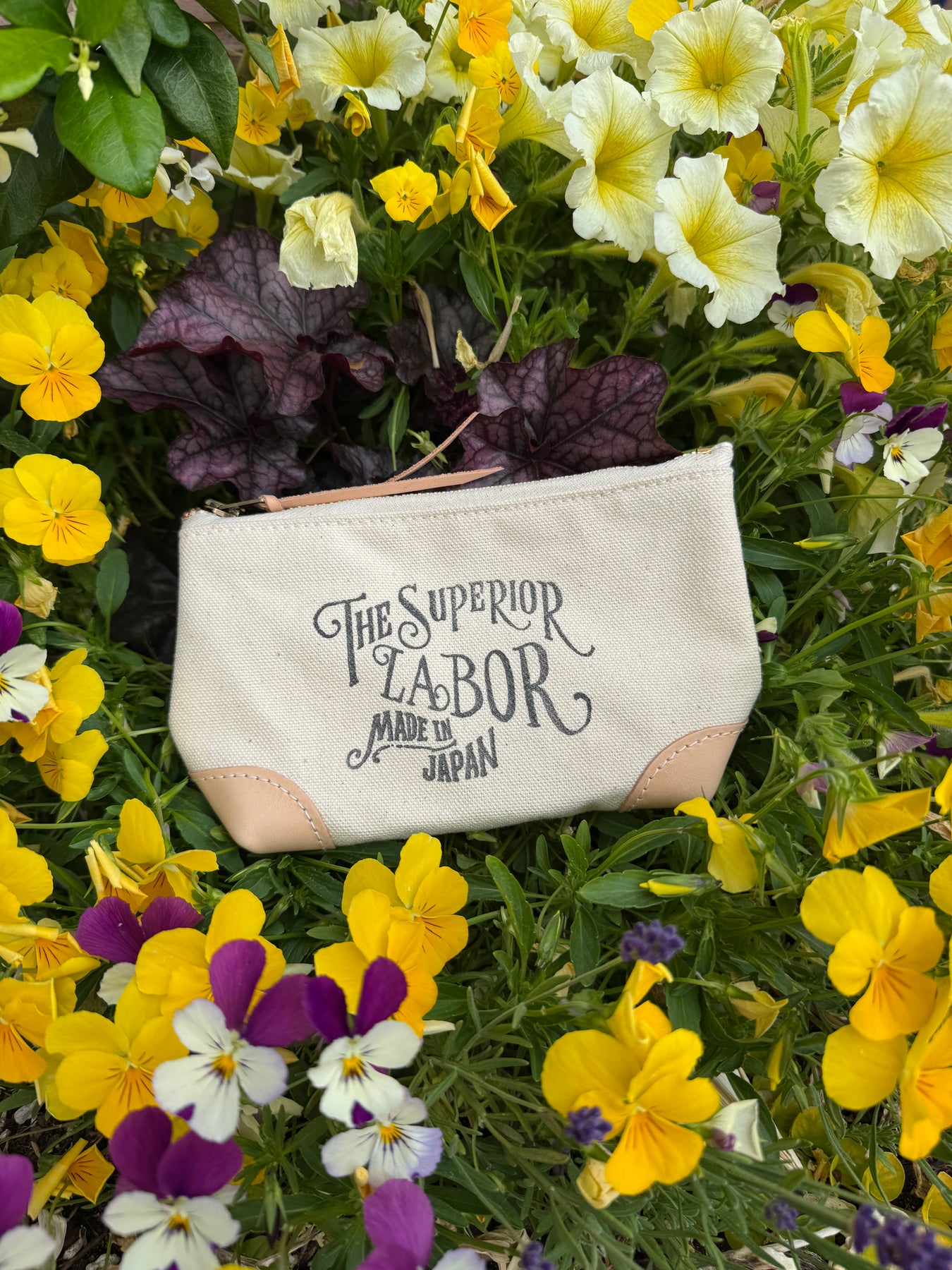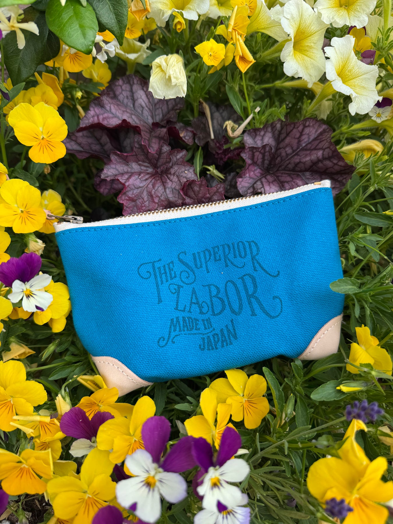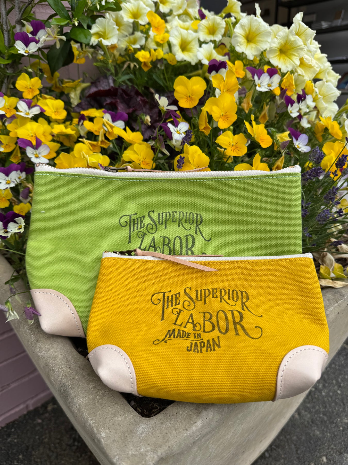This pouch is made of colored canvas and has leather on the bottom corners, and is part of the same series as the Color Canvas Market Bag.