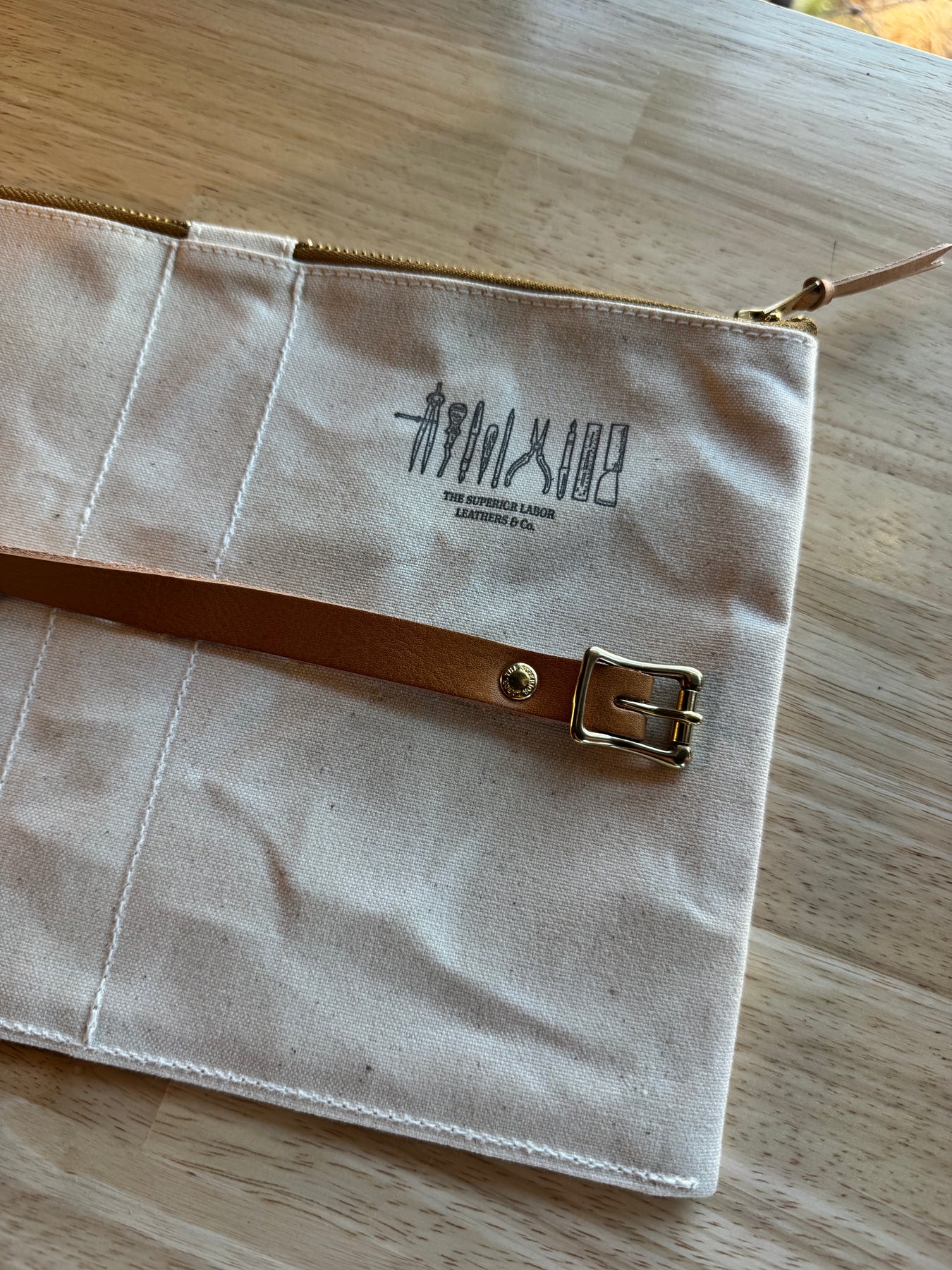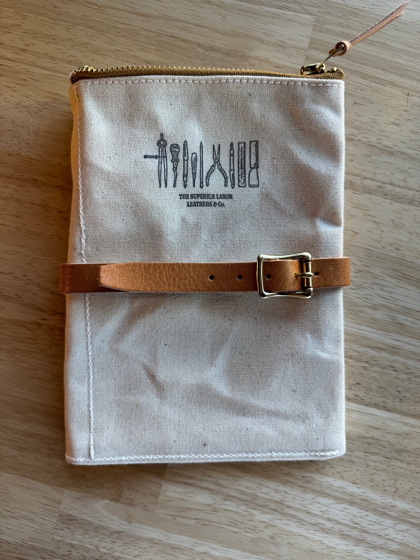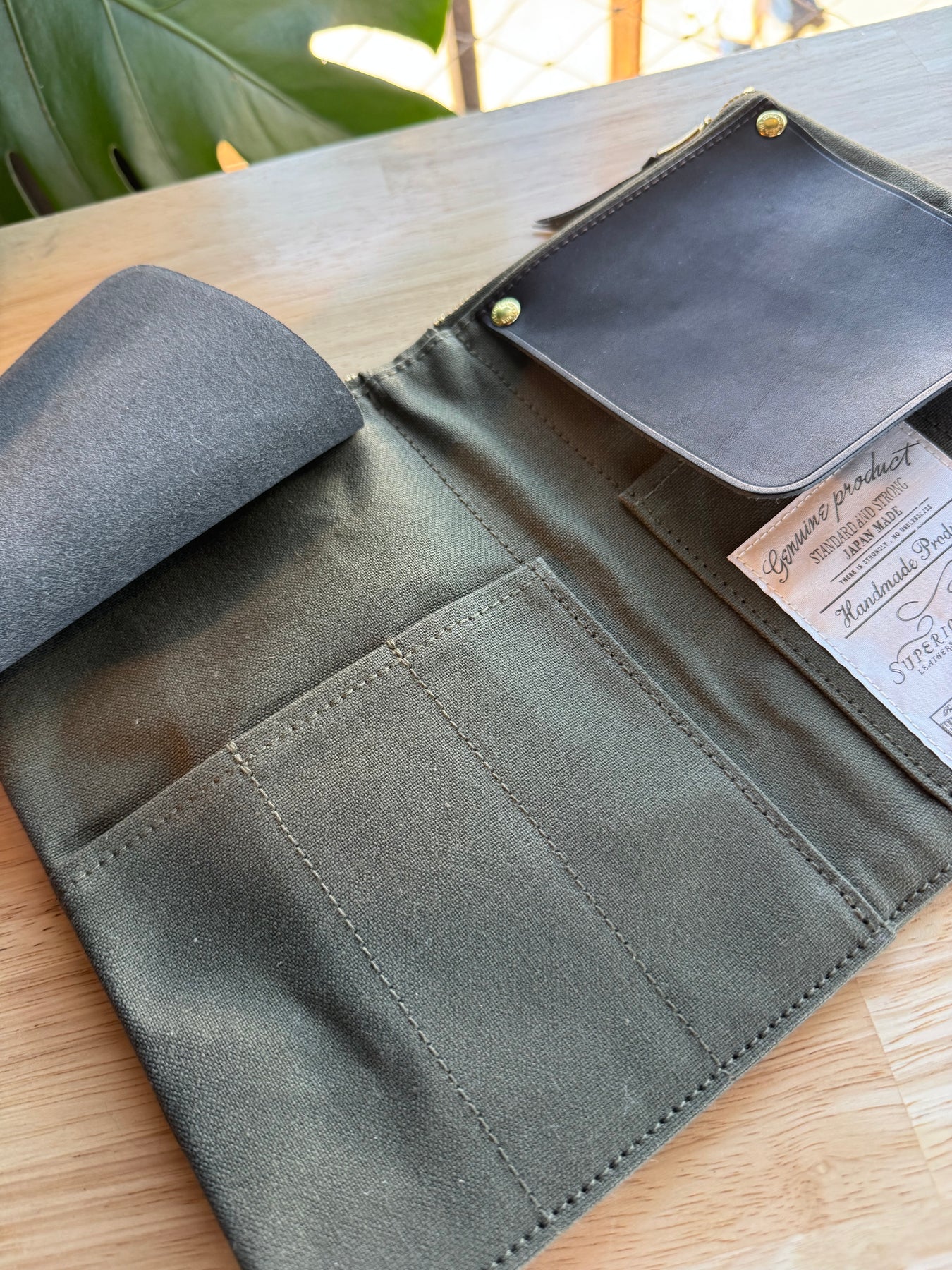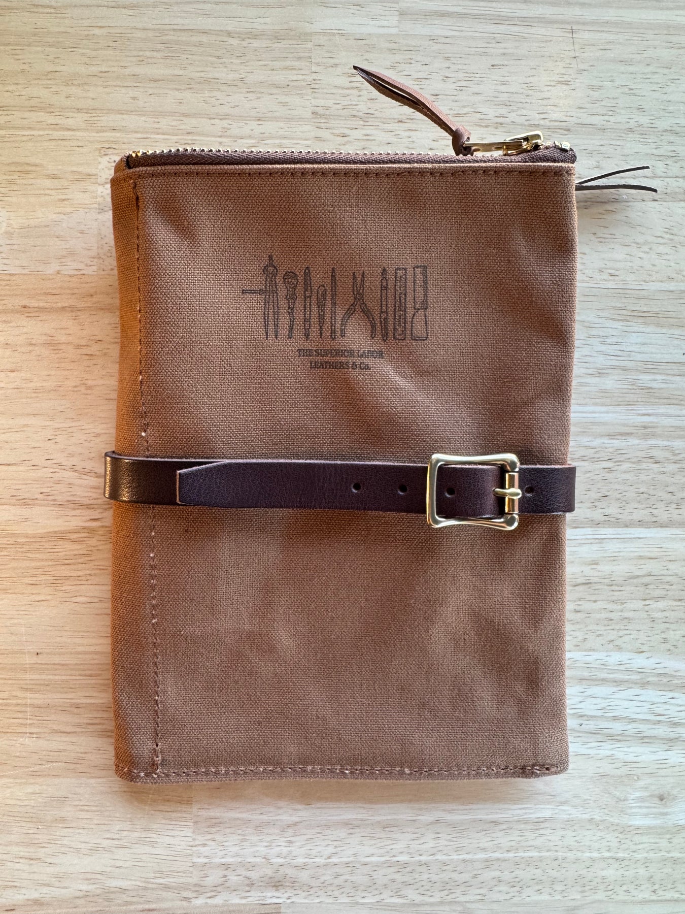 Crafted from lightweight yet durable paraffin canvas, the case includes an interior pocket with a leather flap—perfect for safely storing fountain pens and other delicate tools.A zippered compartment at the top holds masking tape, scissors, and other small essentials with ease.