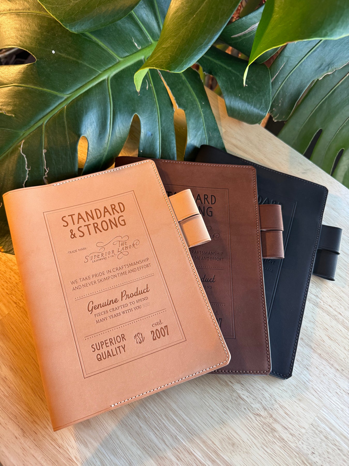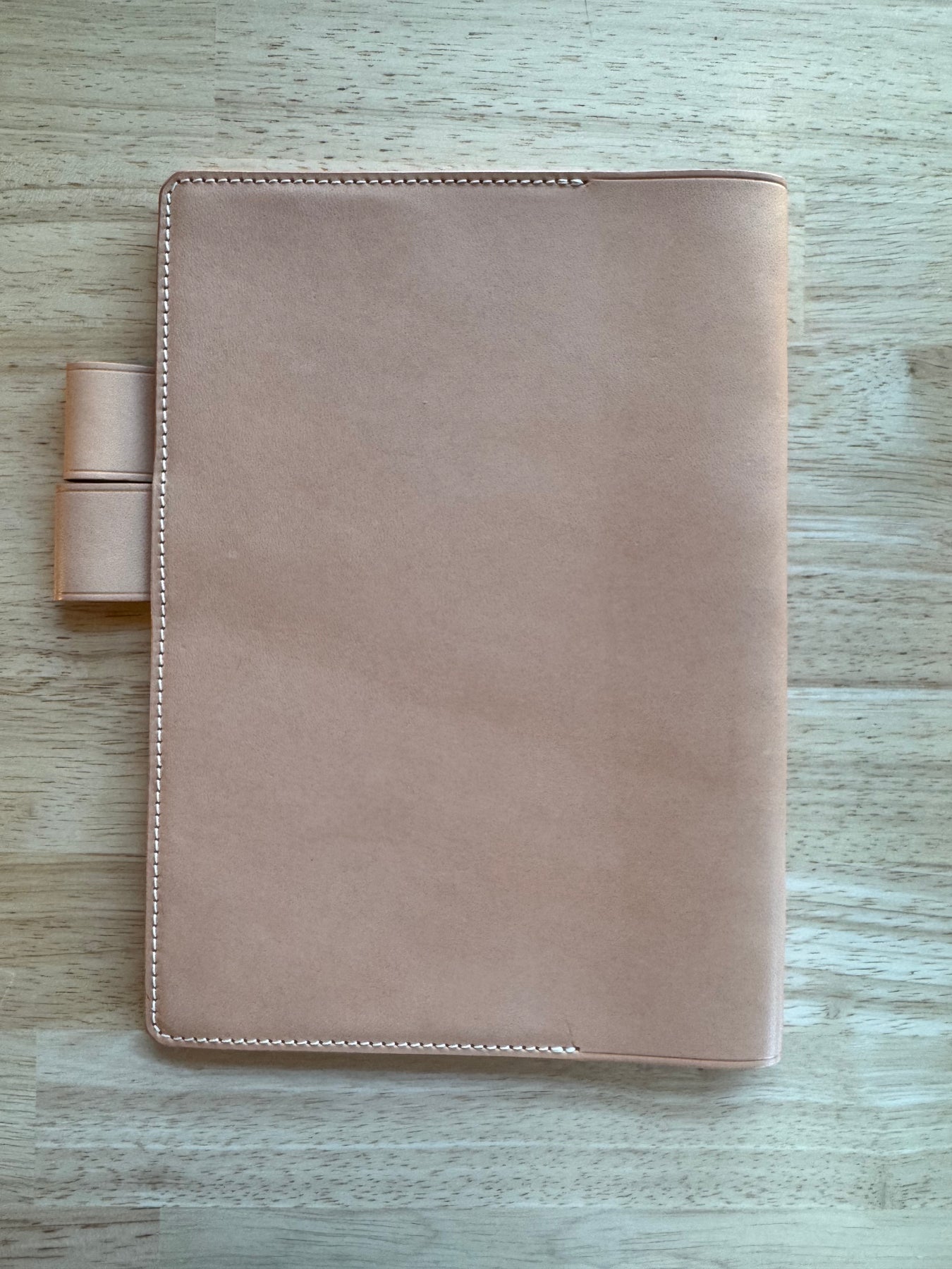 Pen holders are attached to both the front and back covers, allowing you to secure the notebook closed by threading a single pen through both loops.