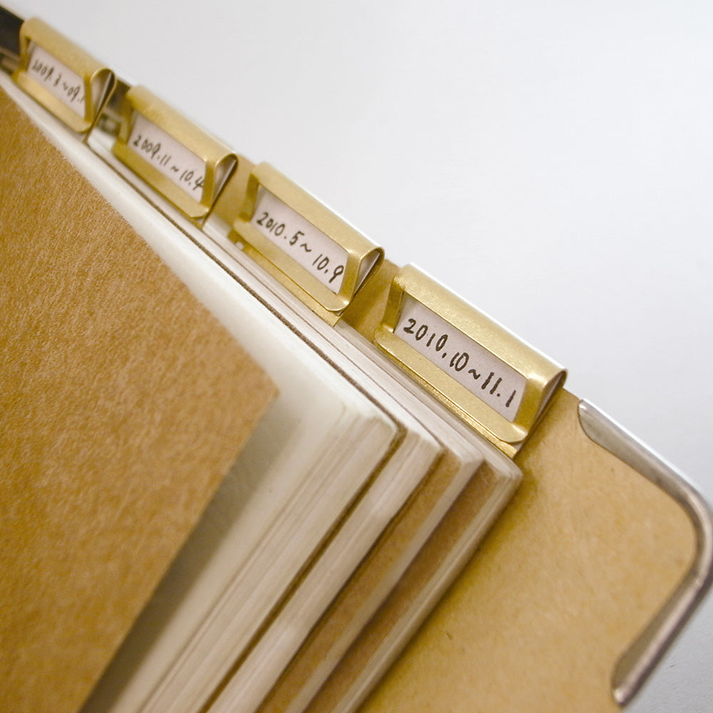 Brass clips that can be used with the paper with the title and date written between the frames. It is recommended as an index for notes and files, as well as for mounting on envelopes and envelopes, for organizing documents and business cards. In addition, the frame itself is also a clip, so if you put it on the cover, it will also be a label frame.