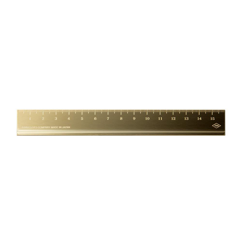 A simple ruler made of solid brass. With 45 tons of power, the brass plate is pulled out, trimmed, bent, trimmed again, and laser engraved to create a ruler. Draw a straight line and measure accurately. One side is slightly raised so that it can be easily picked up and drawn easily with an ink pen. Although use from beginning has a golden luster, over time it will become a deeply dull hue and will continue to change in appearance, like other antique tools.