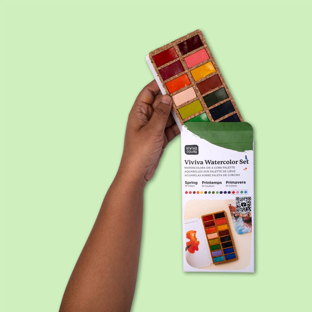 Viviva Watercolor Pans are skillfully handcrafted with a natural cork base and the most premium pigments to give you a rich & organic feel with painting. It comes with 16 Vibrant & Long lasting colors that are LIGHTFAST!