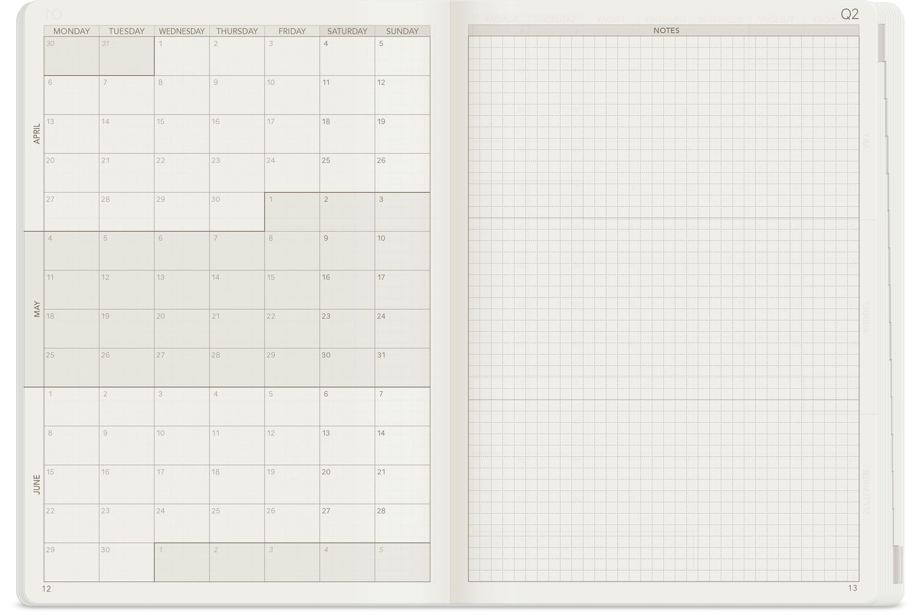 Monday Start: Weeks start on Monday for consistent weekly planning.