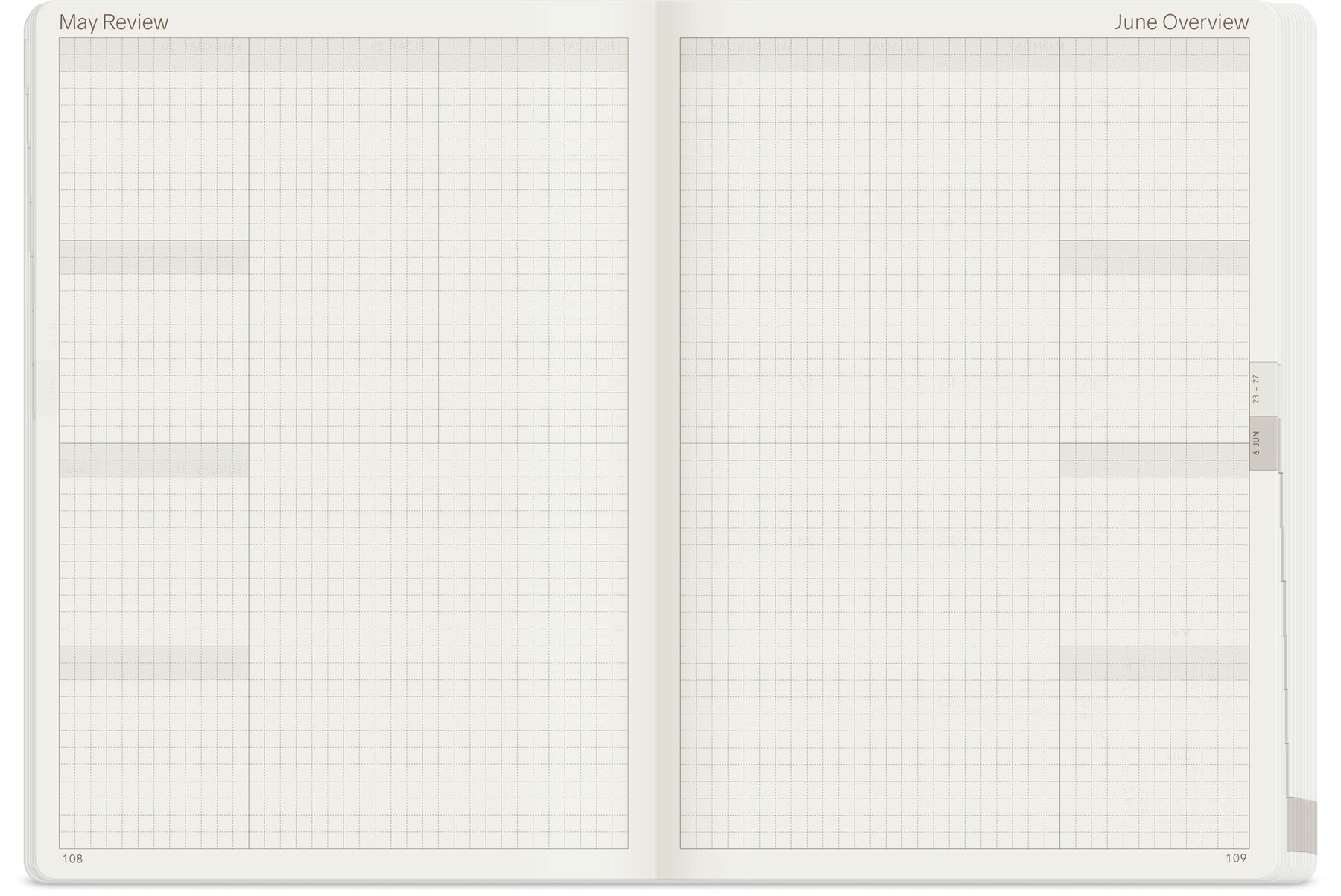 Monthly Overview and Review Pages: Keep track of your monthly progress and reflections.